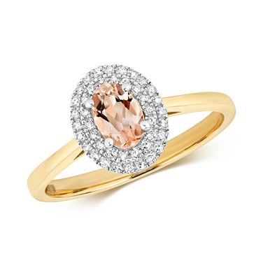 • 9 ct/Karat Gelb Gold Diamant Solitärring Brillant-Schliff 0.12 Karat mit Morganit