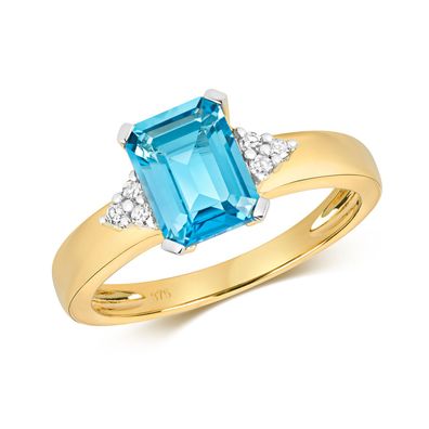 • 9 ct/Karat Gelb Gold Diamant Solitärring Brillant-Schliff 0.10 Karat mit Aquamarin