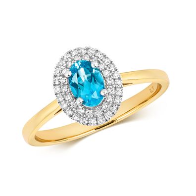 • 9 ct/Karat Gelb Gold Diamant Solitärring Brillant-Schliff 0.14 Karat mit Topas