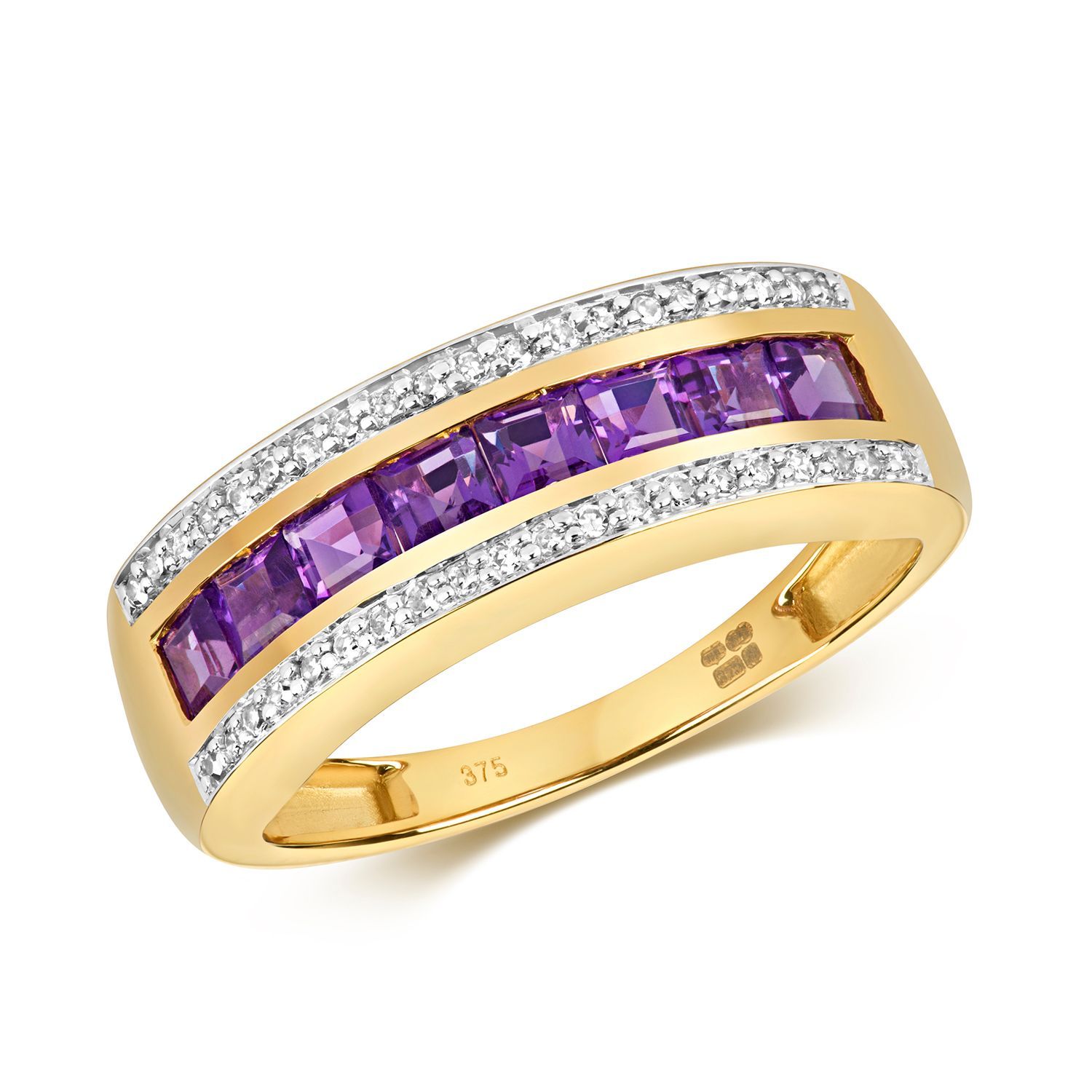 9 ct/Karat Gelb Gold Diamant Damenring Brillant-Schliff 0.13 Karat mit Amethyst