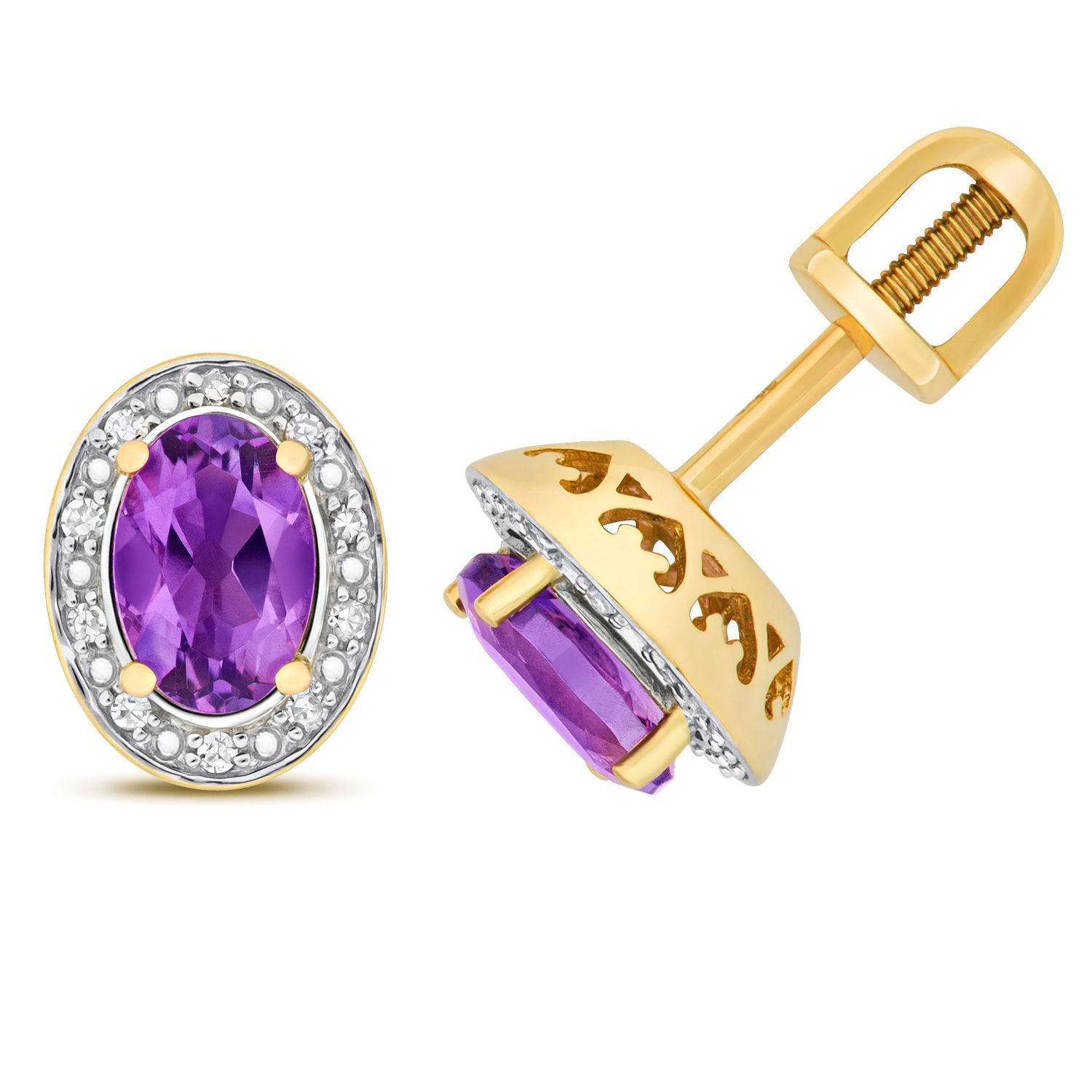 9 ct/Karat Gelb Gold Diamant Ohrstecker Brillant-Schliff 0.06 Karat mit Amethyst
