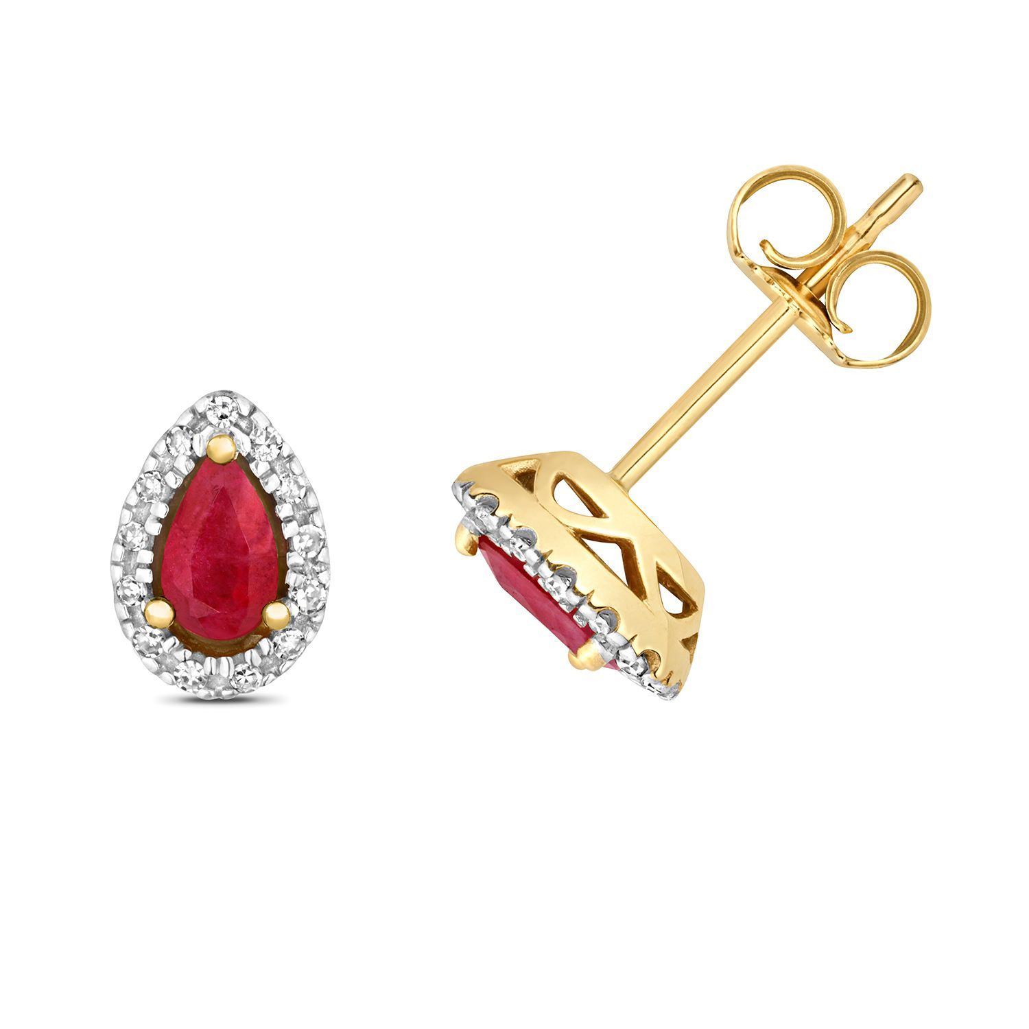 9 ct/Karat Gelb Gold Diamant Paar Ohrstecker Brillant-Schliff 0.07 Karat mit Rubin
