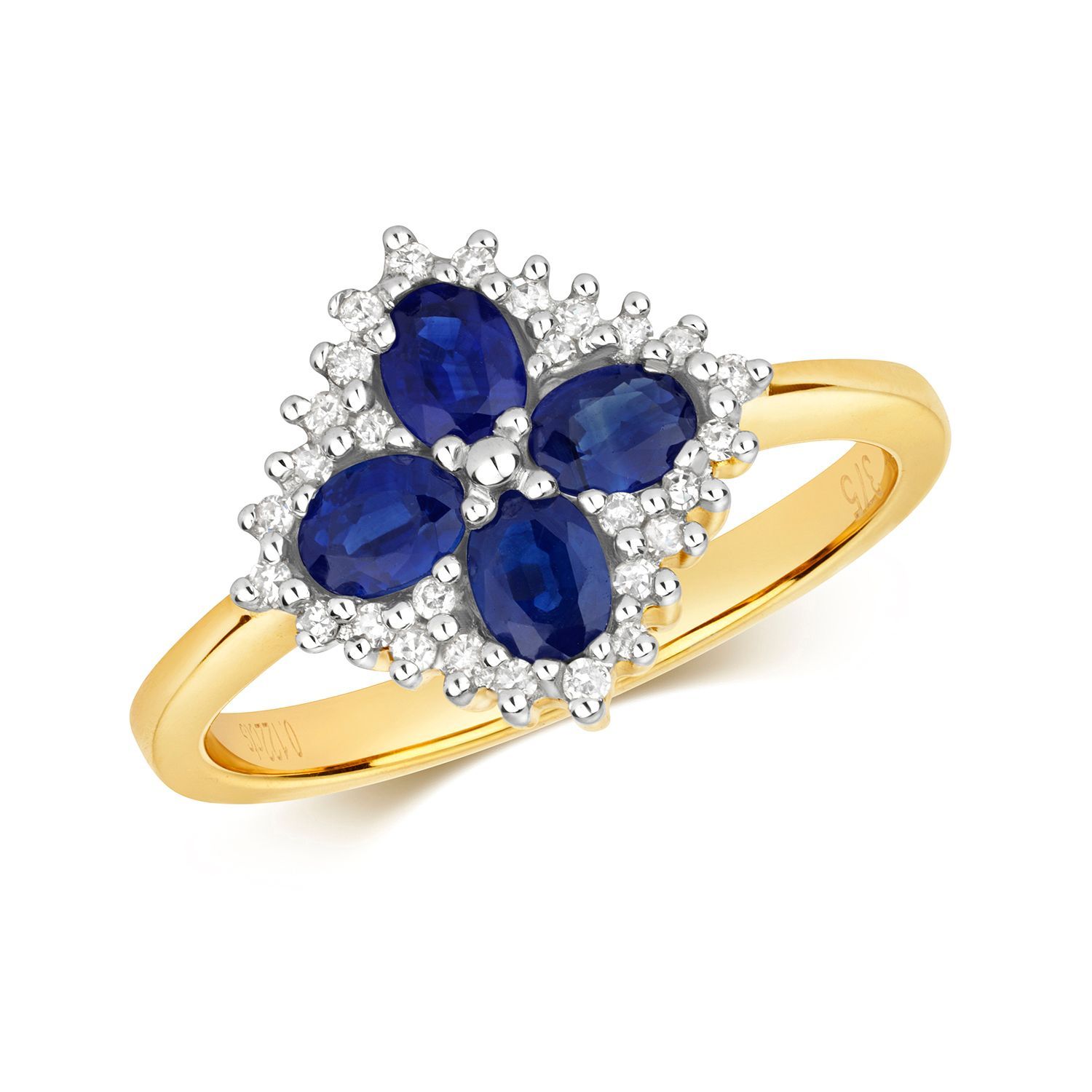 9 ct/Karat Gelb Gold Diamant Ring Brillant-Schliff 0.11 Karat H - PK mit Saphir