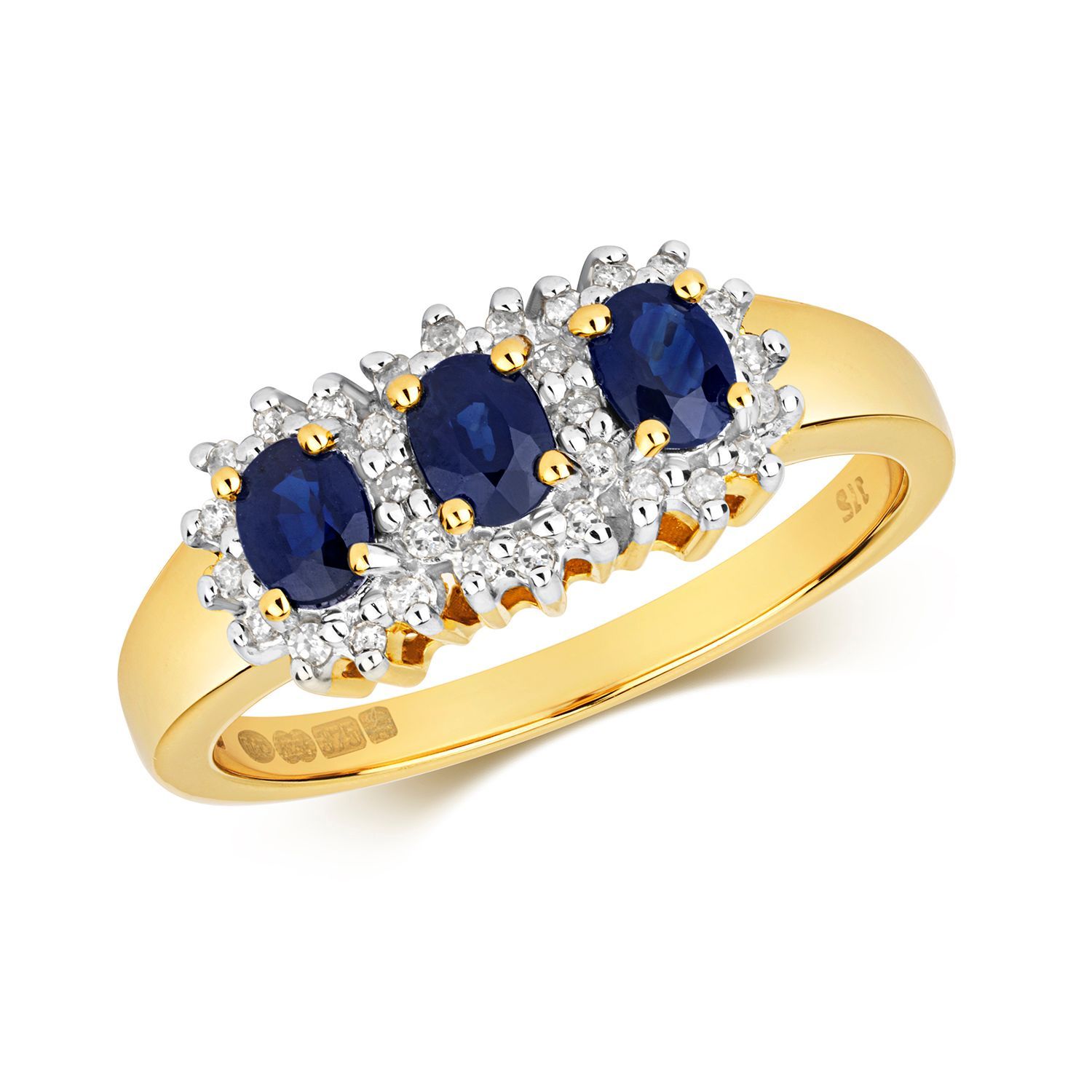 9 ct/Karat Gelb Gold Diamant Ring Brillant-Schliff 0.13 Karat H - PK mit Saphir