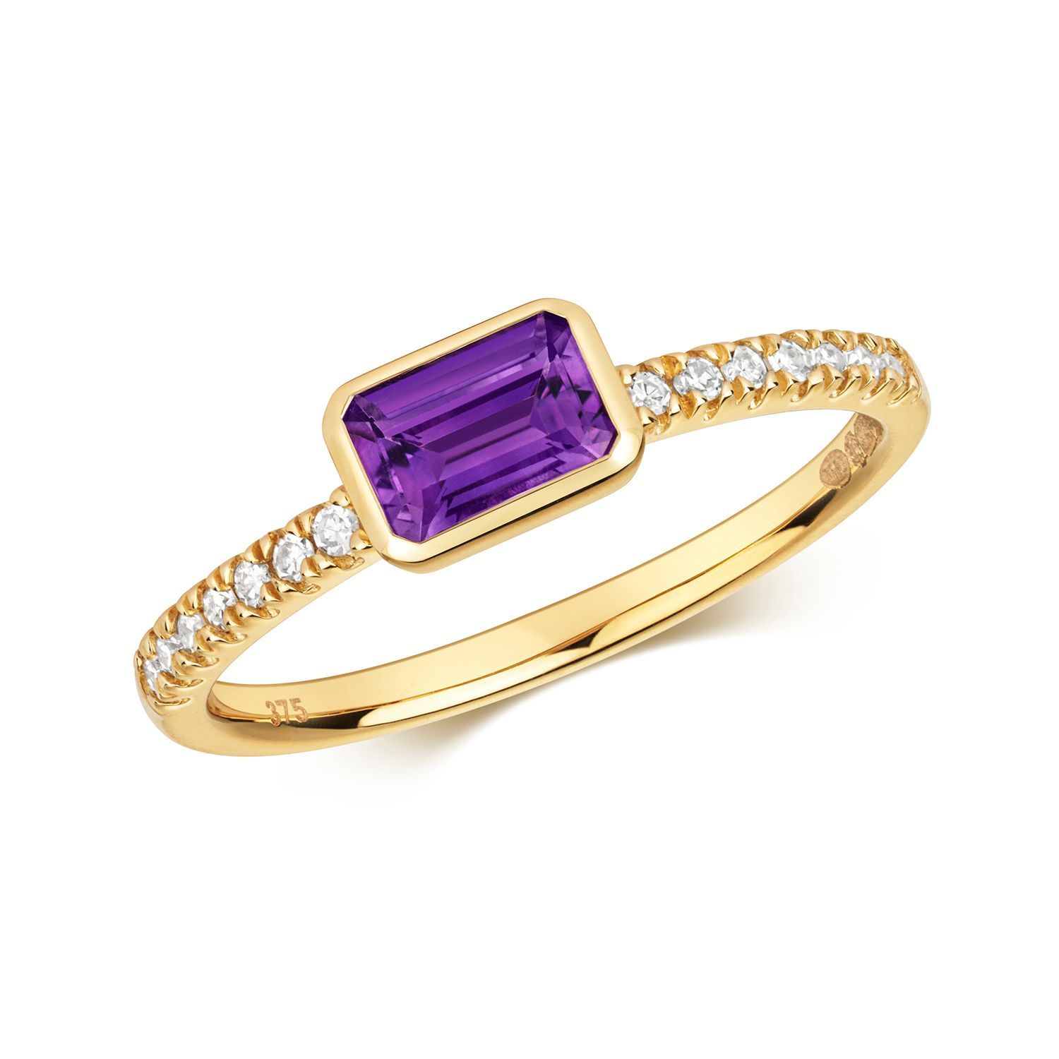 9 ct/Karat Gelb Gold Diamant Solitärring Brillant-Schliff 0.10 Karat mit Amethyst