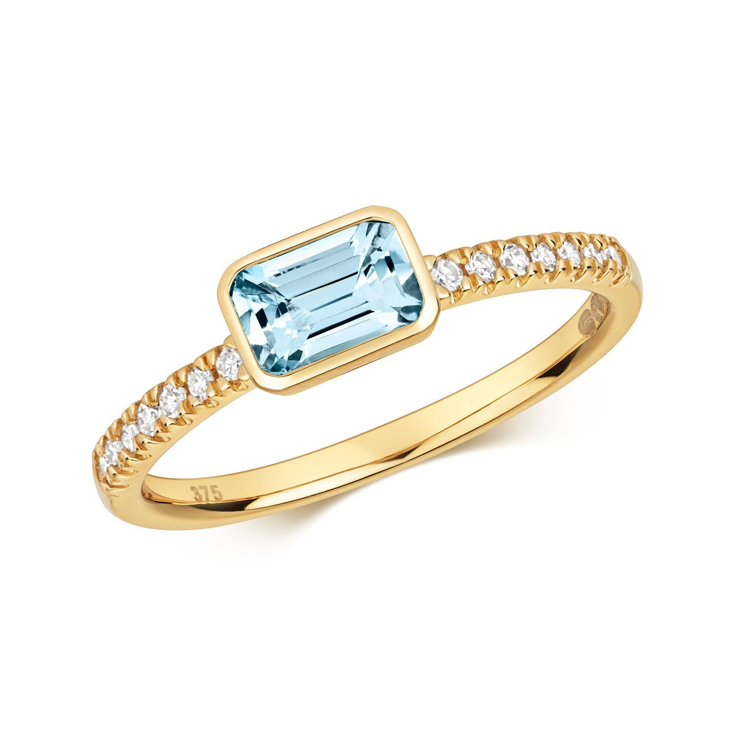 9 ct/Karat Gelb Gold Diamant Solitärring Brillant-Schliff 0.10 Karat mit Aquamarin