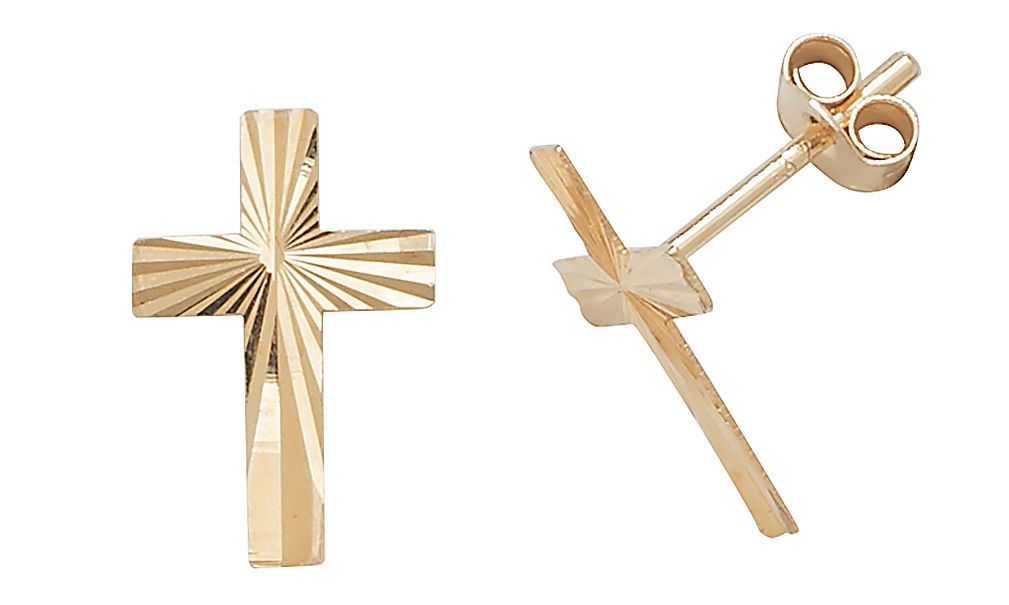 9 ct/Karat Gelb Gold Kreuz Damen - Paar Ohrstecker