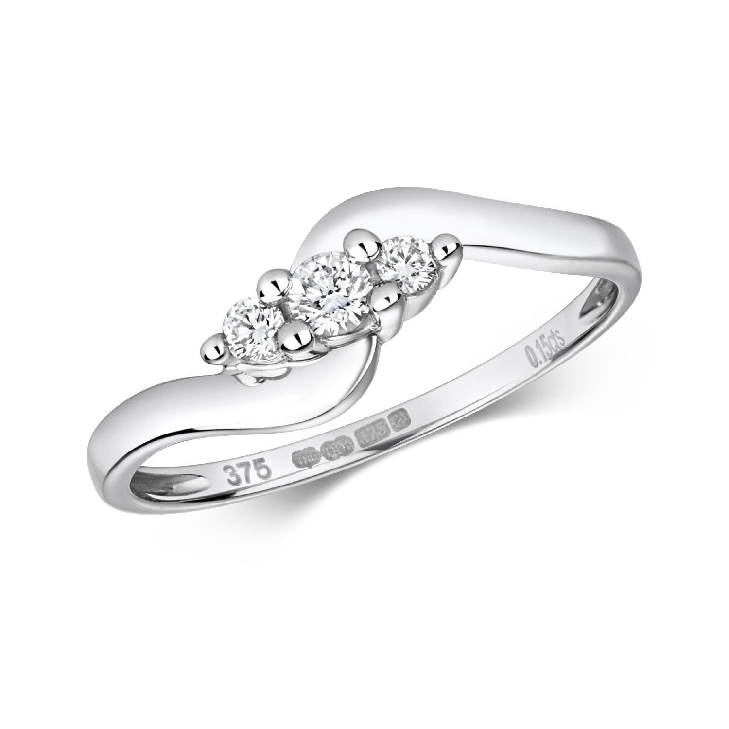 9 ct/Karat Weißgold Damen - Diamant Kreuz über Ring / Ring gekreuzt
