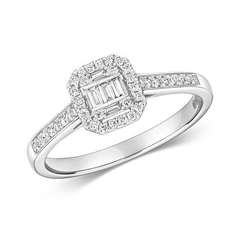 9 ct/Karat Weißgold Damen - Diamant Solitärring Baguette-Schliff 0.25 Karat H - SI