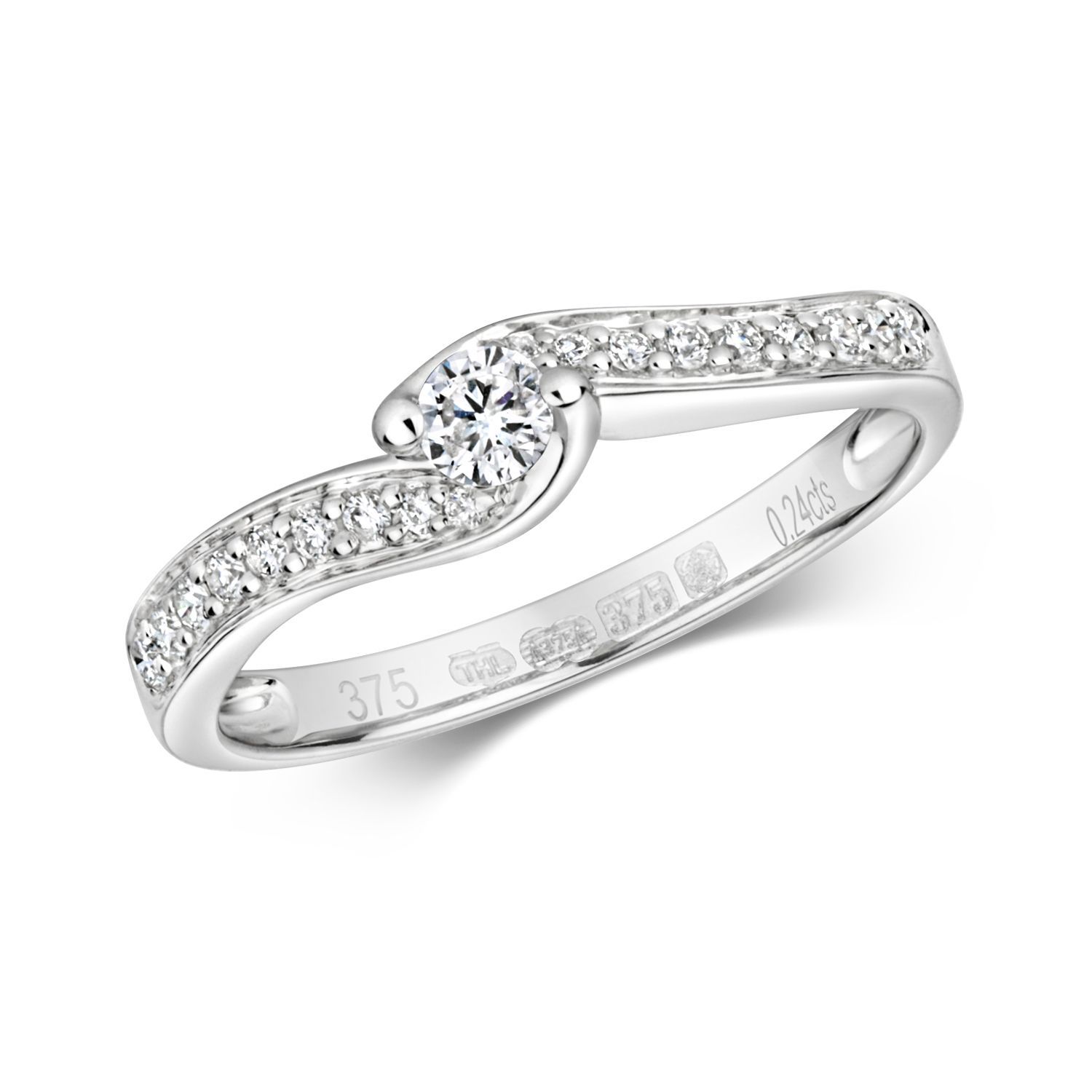 9 ct/Karat Weißgold Diamant Damenring Brillant-Schliff 0.25 Karat H - PK1