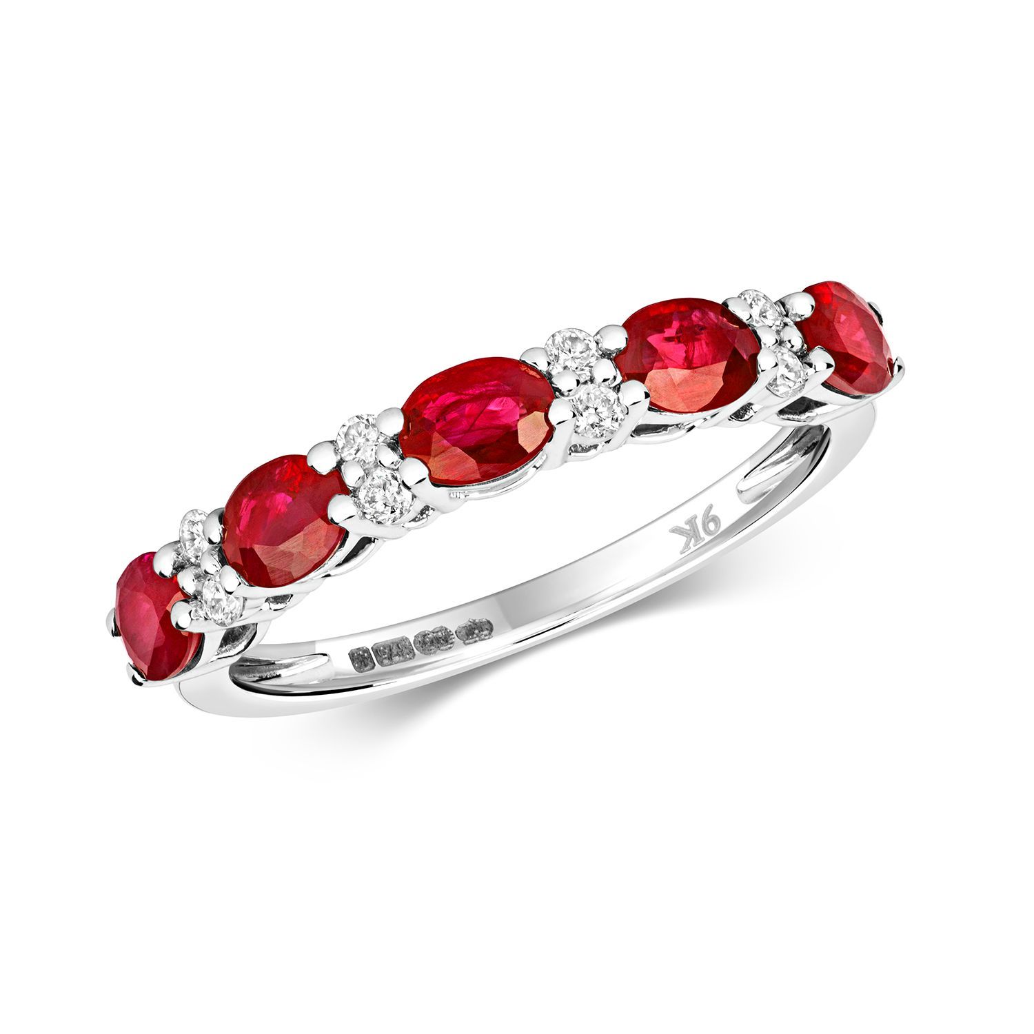 9 ct/Karat Weißgold Diamant Ring Brillant-Schliff 0.10 Karat H - I1 mit Rubin