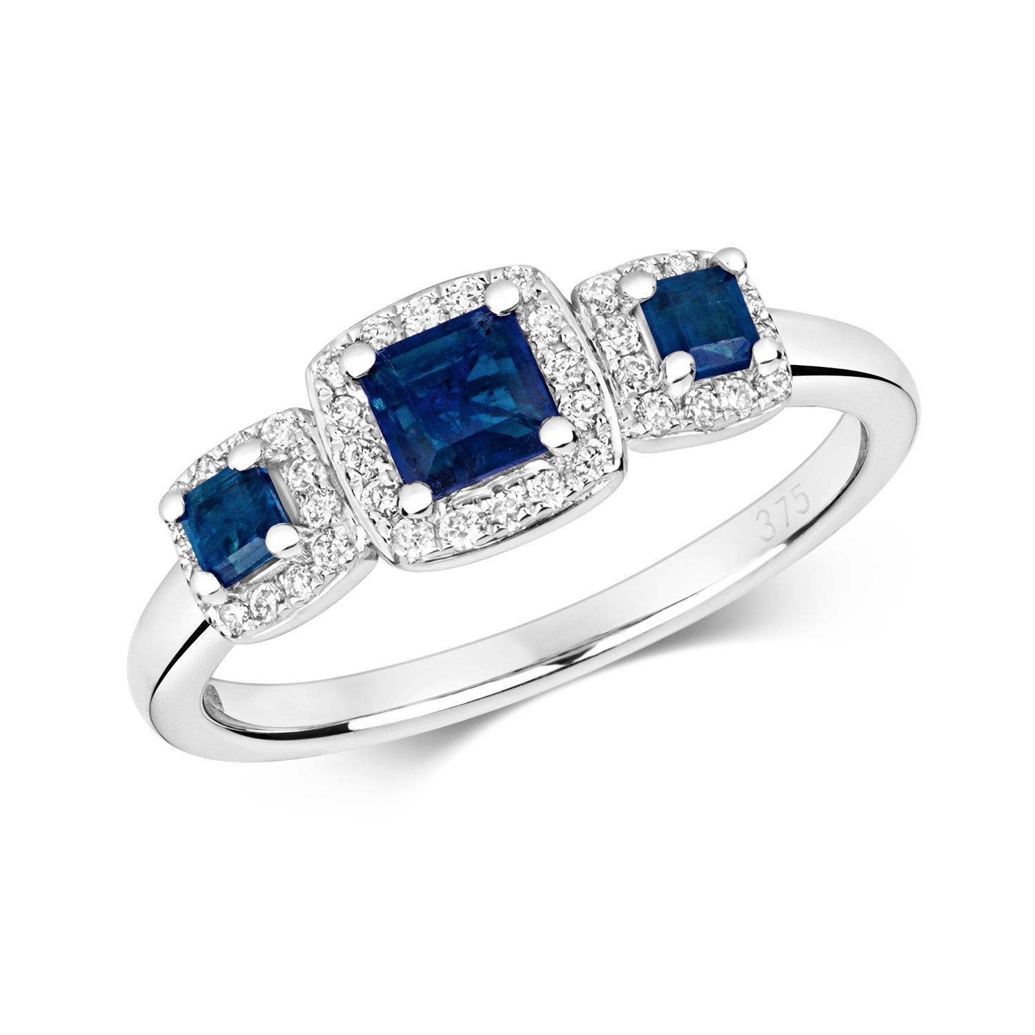 9 ct/Karat Weißgold Diamant Ring Brillant-Schliff 0.15 Karat HI - I1 mit Saphir