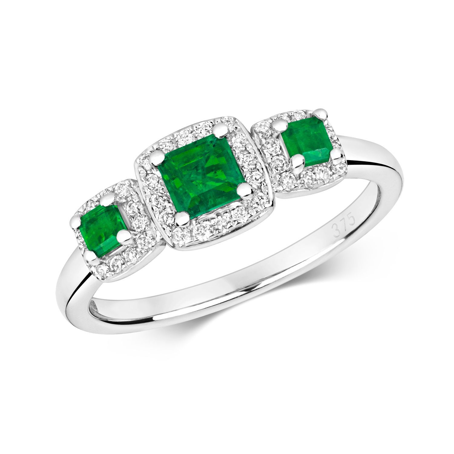 9 ct/Karat Weißgold Diamant Ring Brillant-Schliff 0.15 Karat HI - I1 mit Smaragd