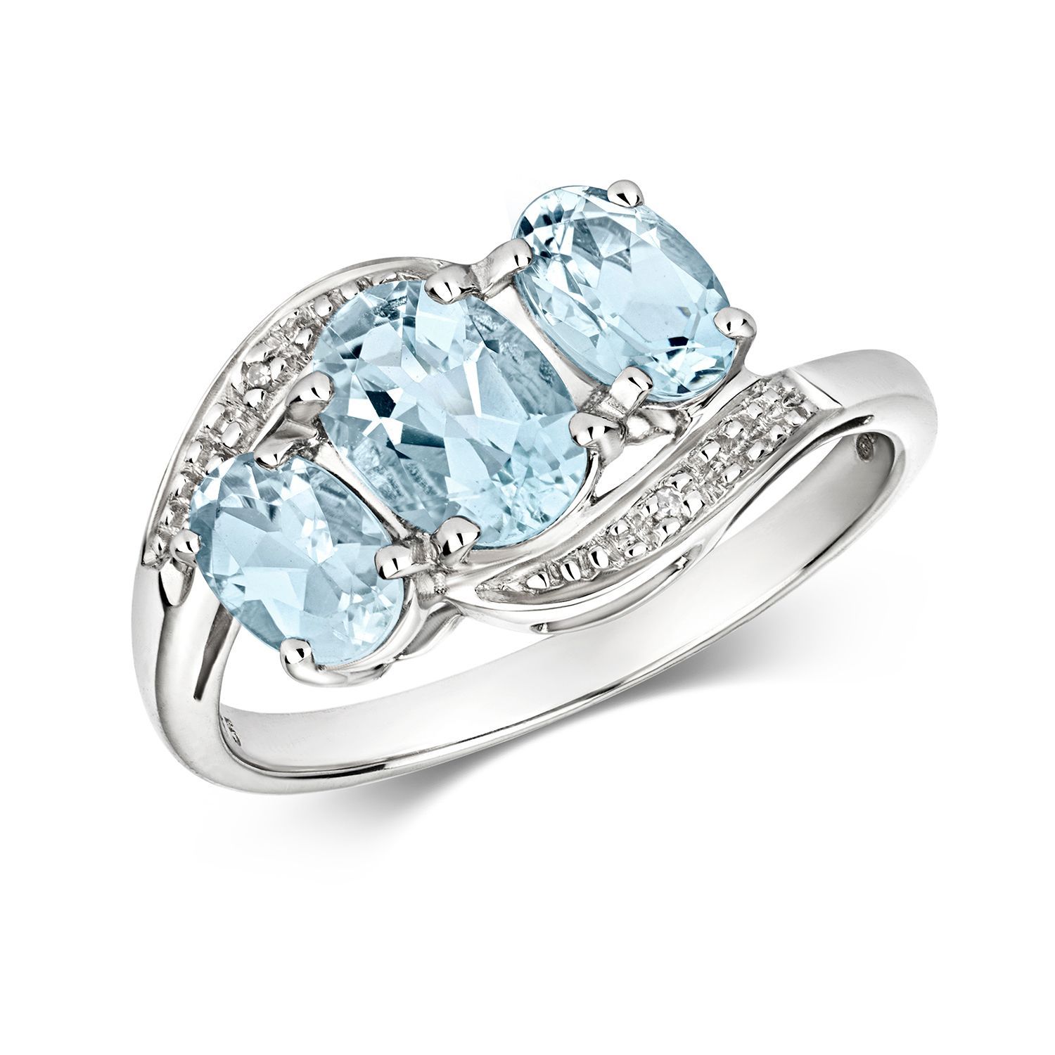 9 ct/Karat Weißgold Trilogie Diamantring Brillant-Schliff H - PK mit Aquamarin