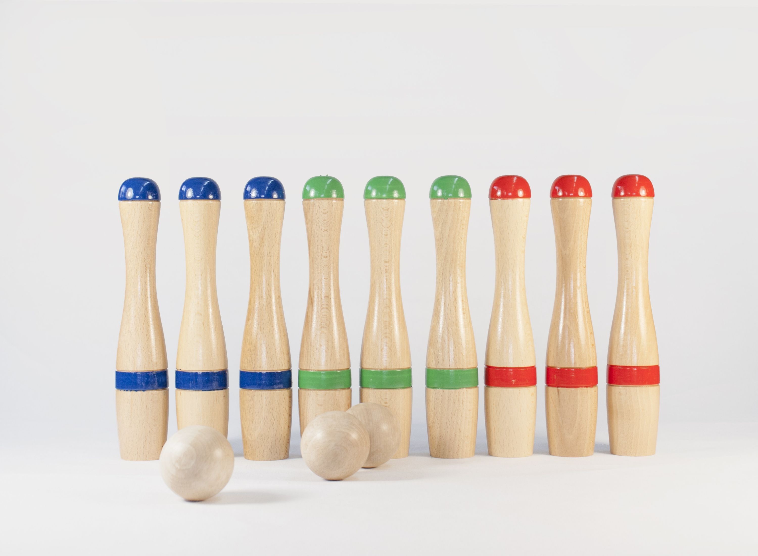 9 Holzkegel 23,5 cm hoch, Kegelspiel mit Kegeln und 3 Kugeln aus Holz, Bowling