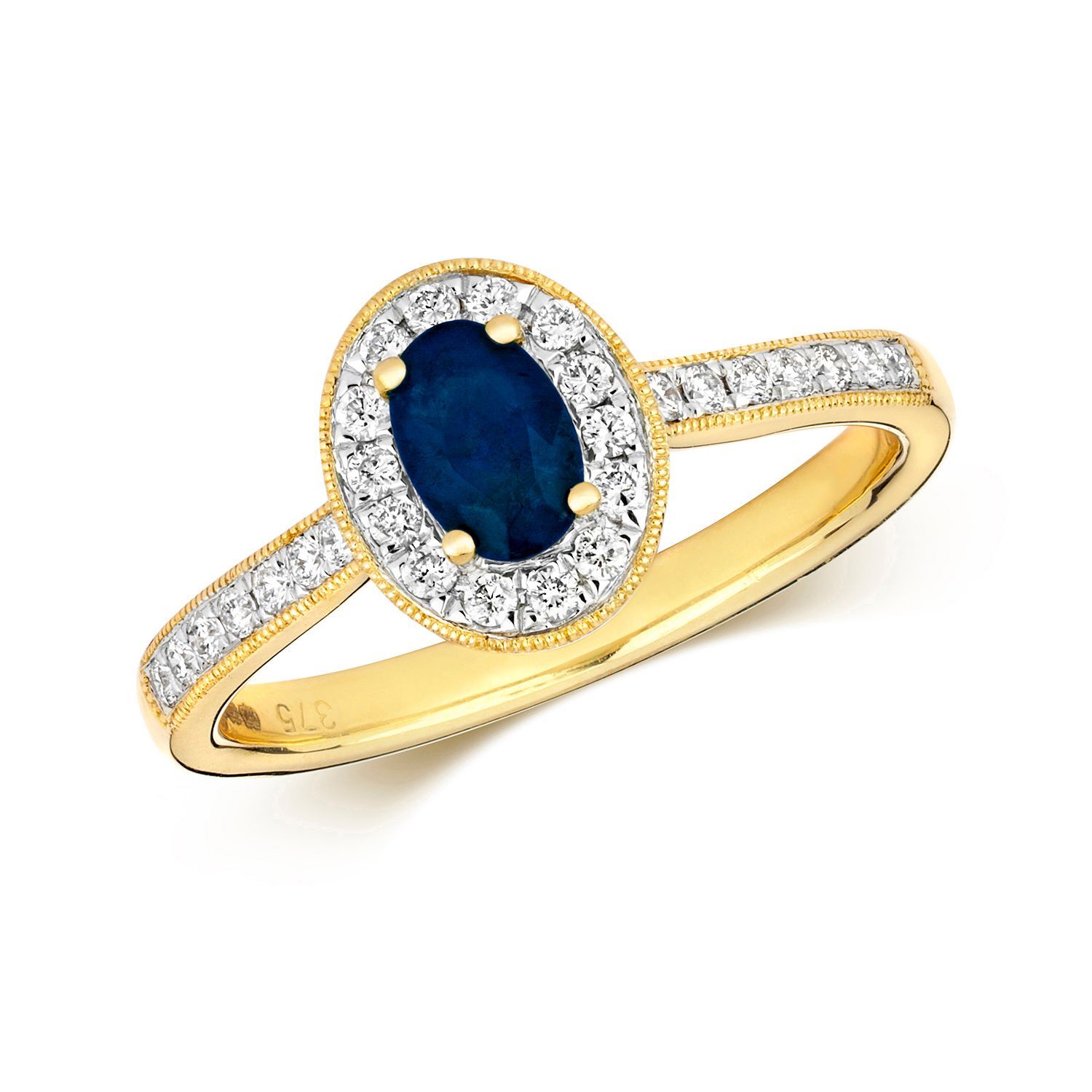 9 Karat (375) Gold Cluster Diamantring Brillant-Schliff 0.25 Karat HI - I1 mit Saphir