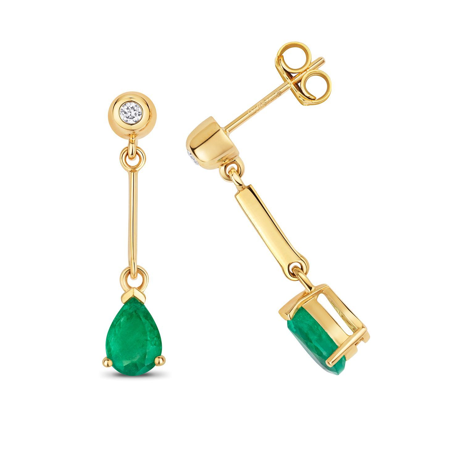 9 Karat (375) Gold Damen - Diamant Paar Ohrringe 0.07 Karat mit Smaragd - 25mm*5mm