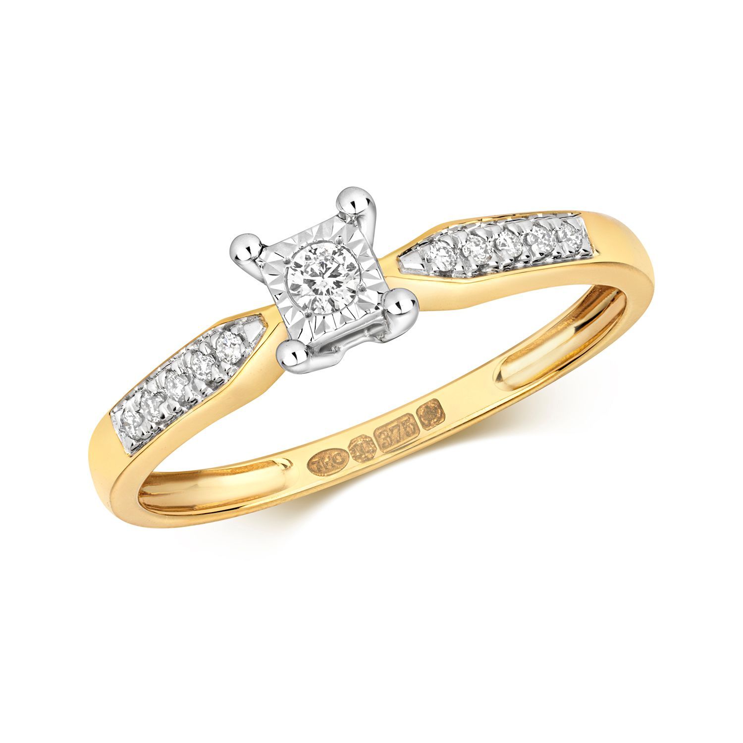 9 Karat (375) Gold Damen - Diamant Ring Brillant-Schliff 0.16 Karat H - I1 I2