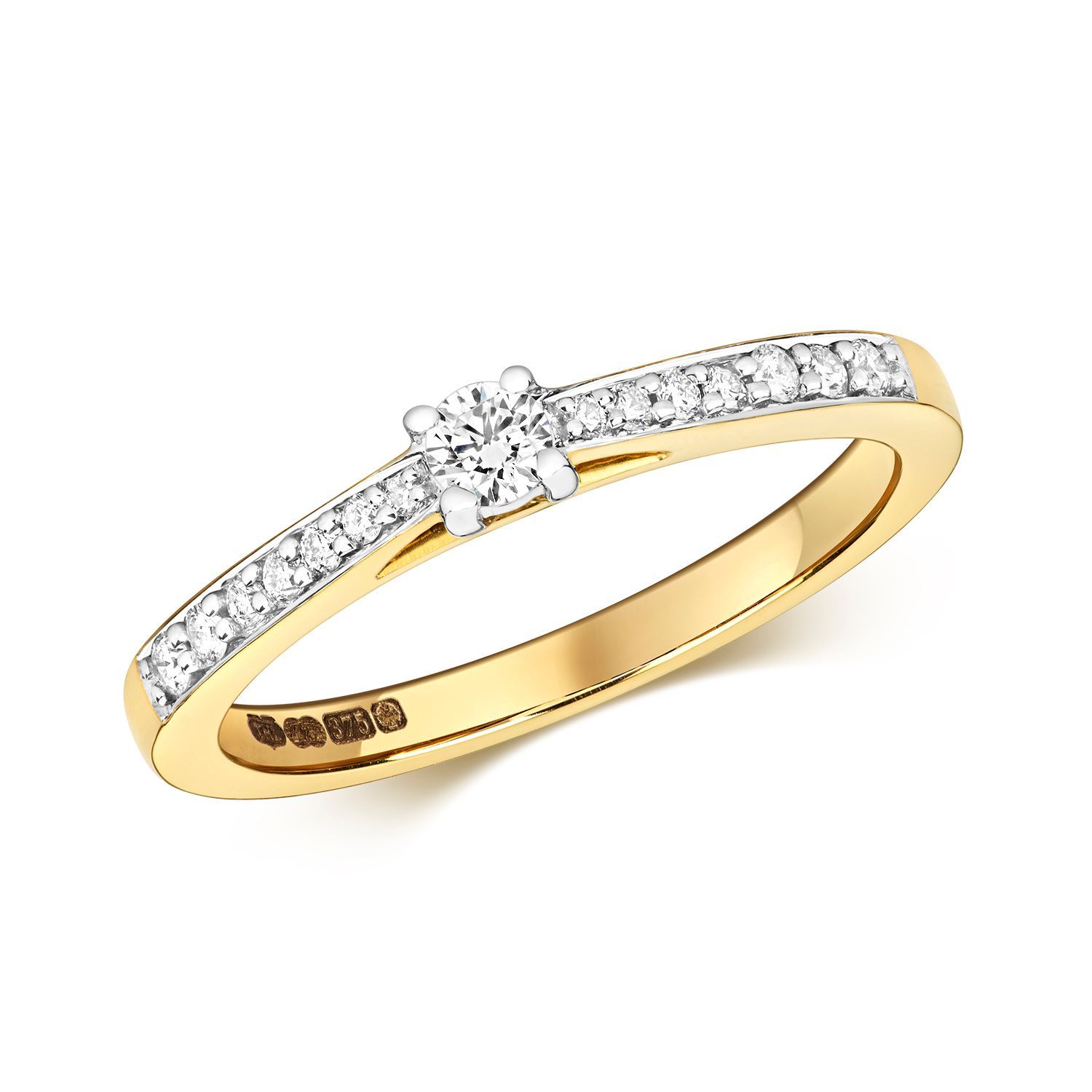 9 Karat (375) Gold Damen - Diamant Solitärring Brillant-Schliff 0.22 Karat H - I1