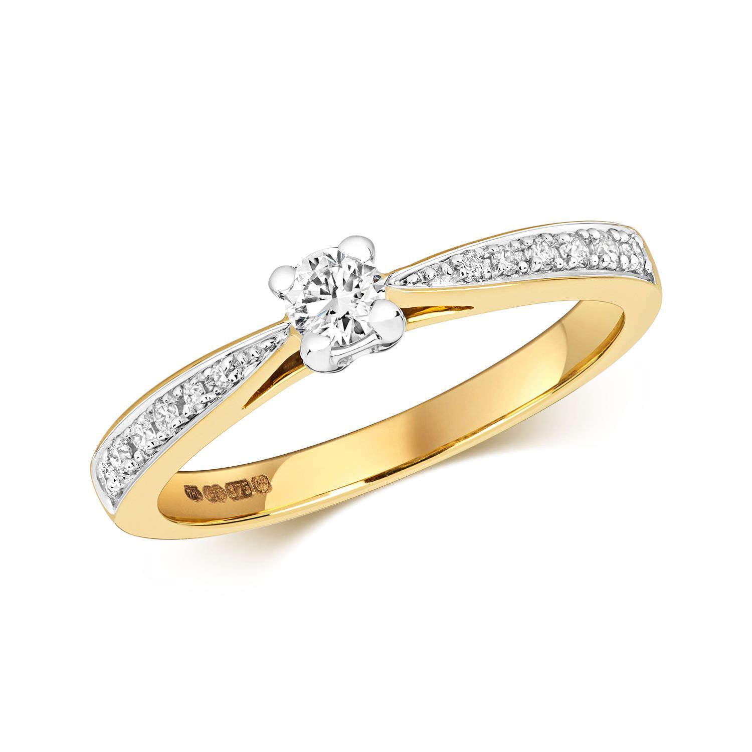 9 Karat (375) Gold Damen - Diamant Solitärring Brillant-Schliff 0.25 Karat H - I1