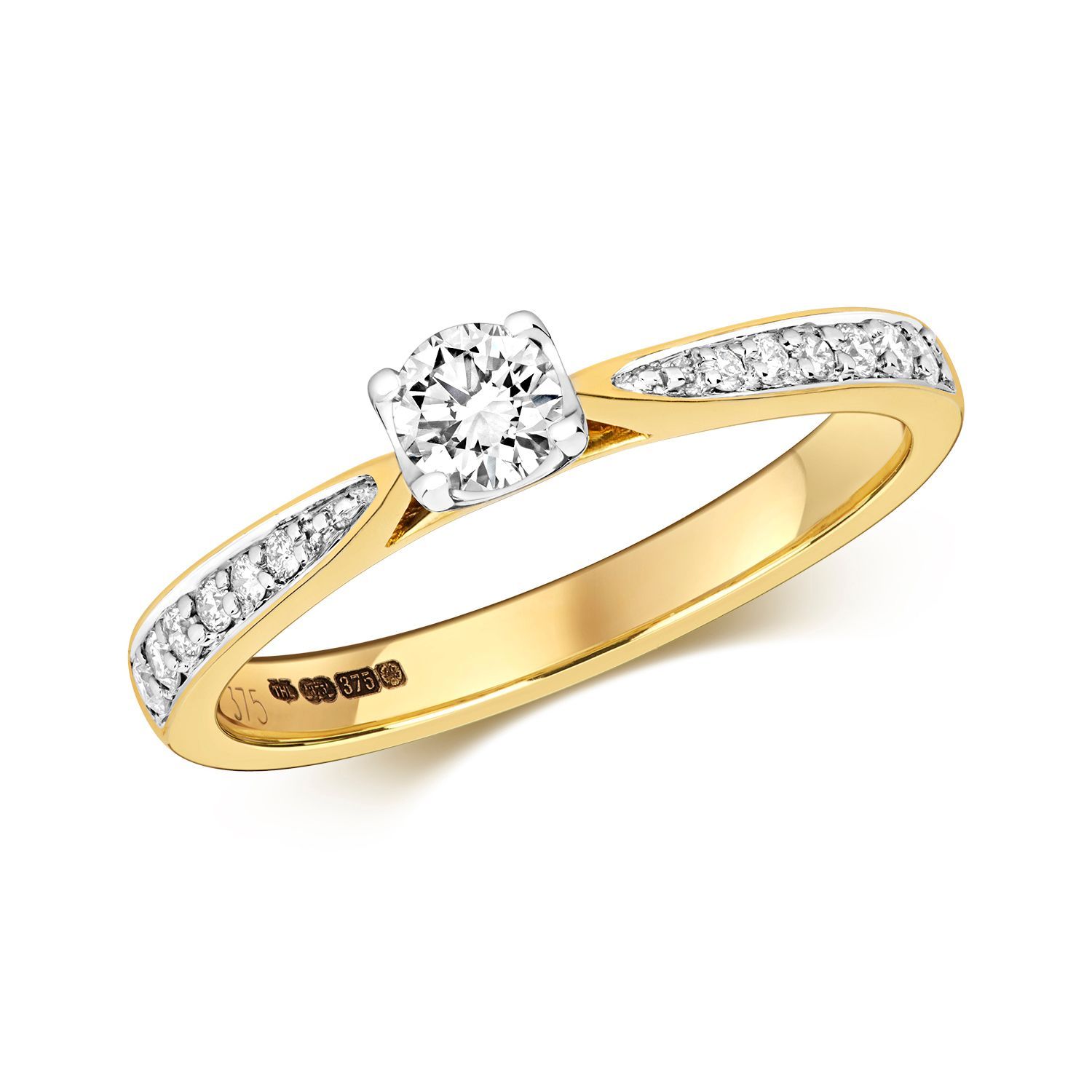 9 Karat (375) Gold Damen - Diamant Solitärring Brillant-Schliff 0.37 Karat H - I1