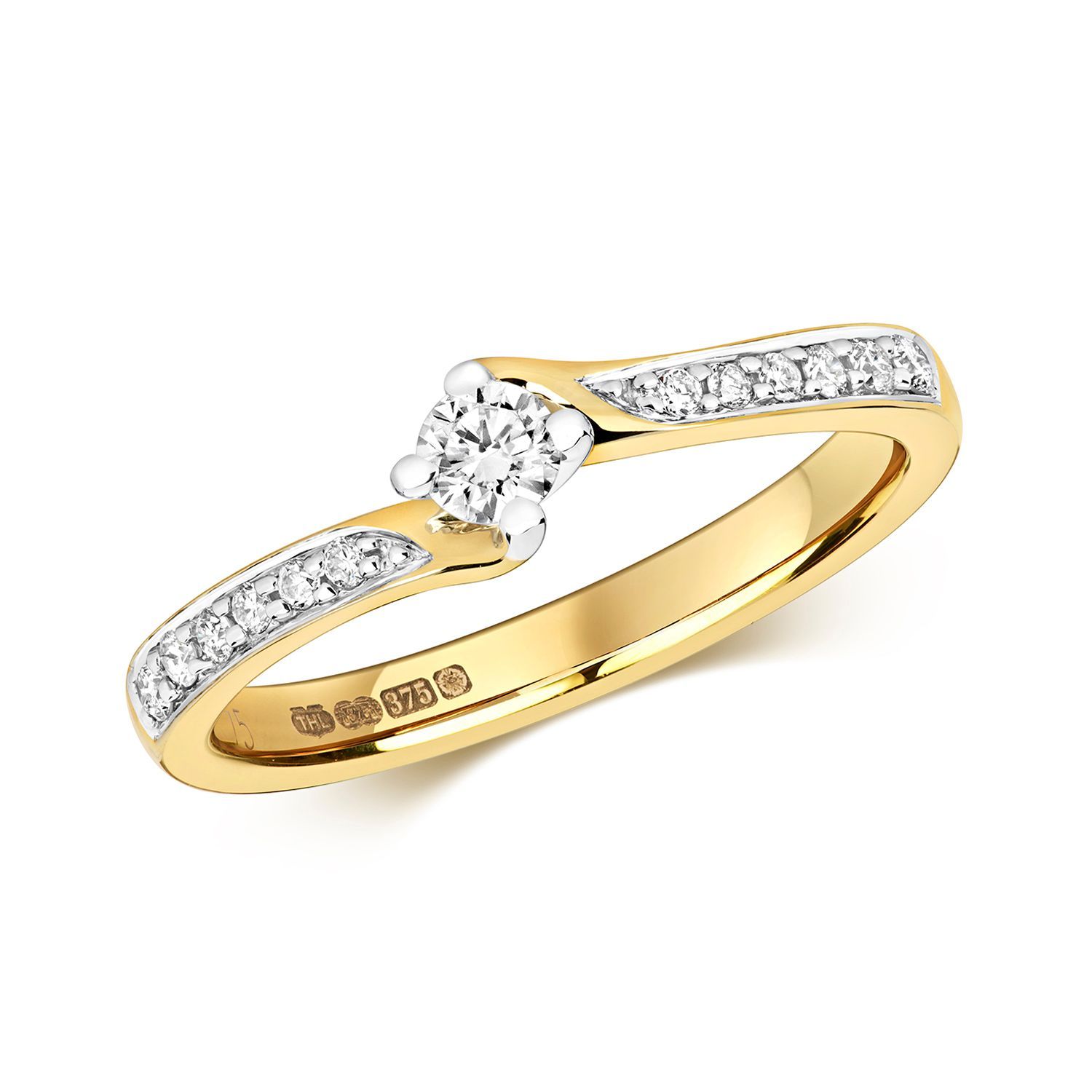 9 Karat (375) Gold Solitär Verlobung Diamantring Brillant-Schliff 0.26 Karat H - I1