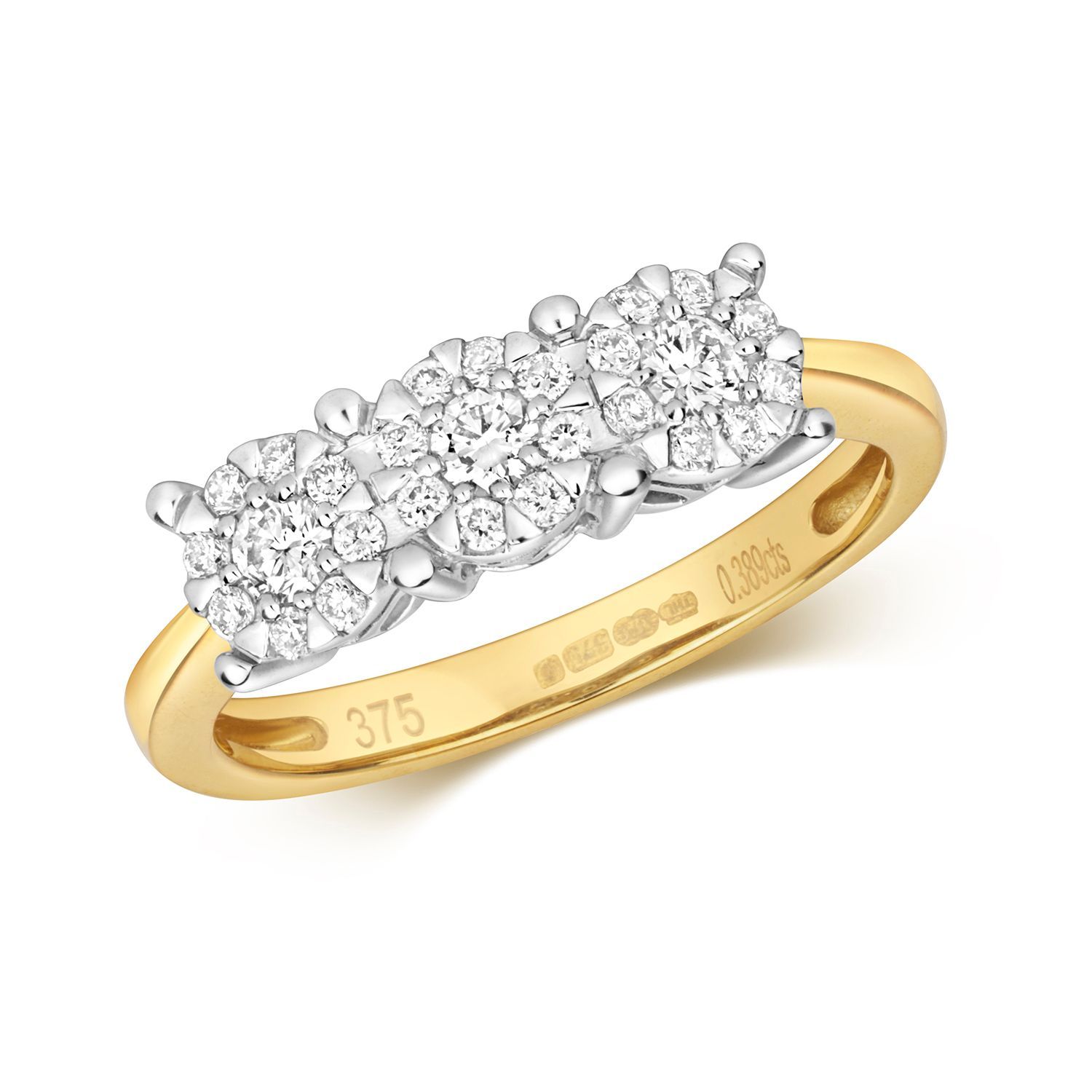 9 Karat (375) Gold Trilogie Diamant Damenring Brillant-Schliff 0.39 Karat G - I1 I2