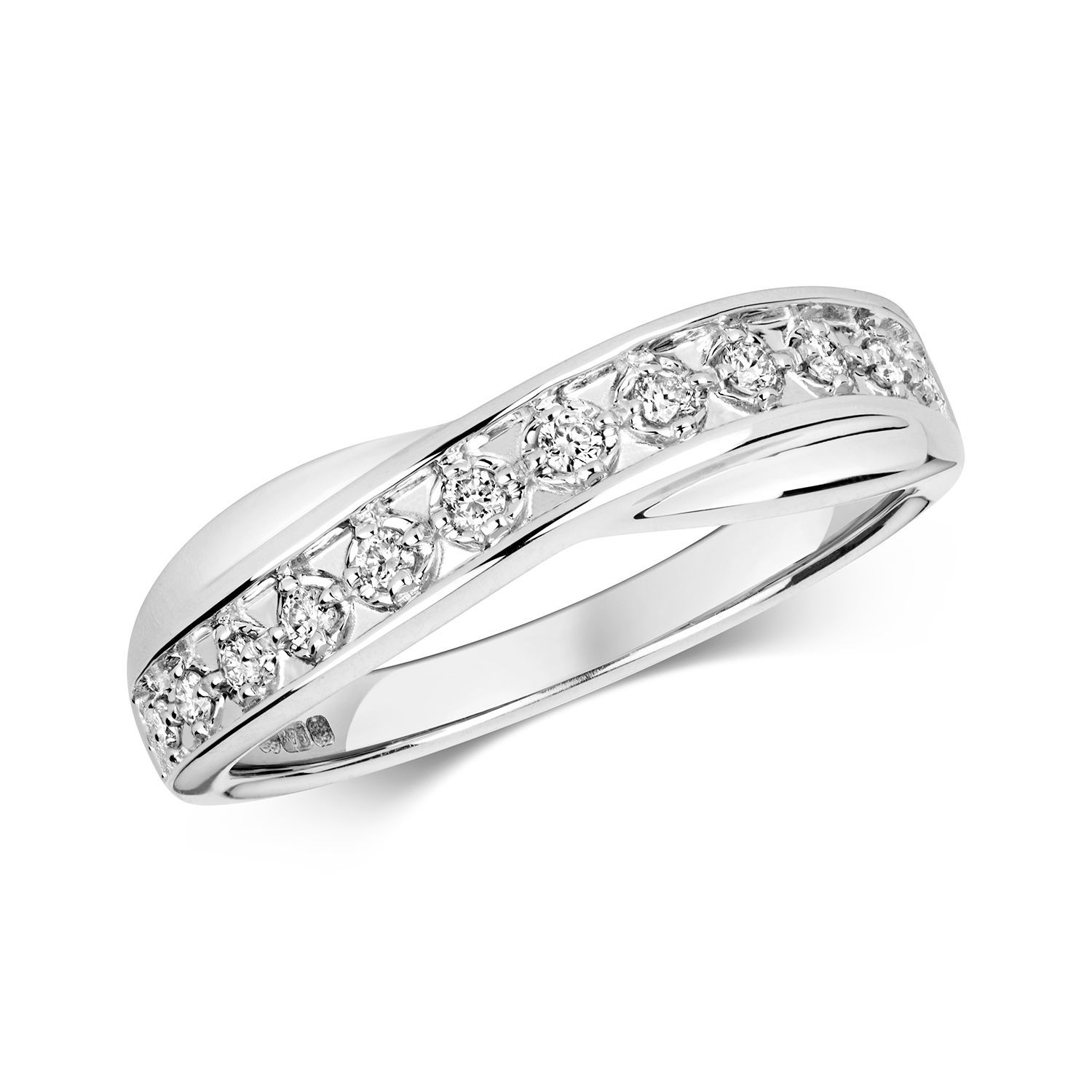 9 Karat (375) Weißgold Damen - Diamant Kreuz über Ring / Ring gekreuzt