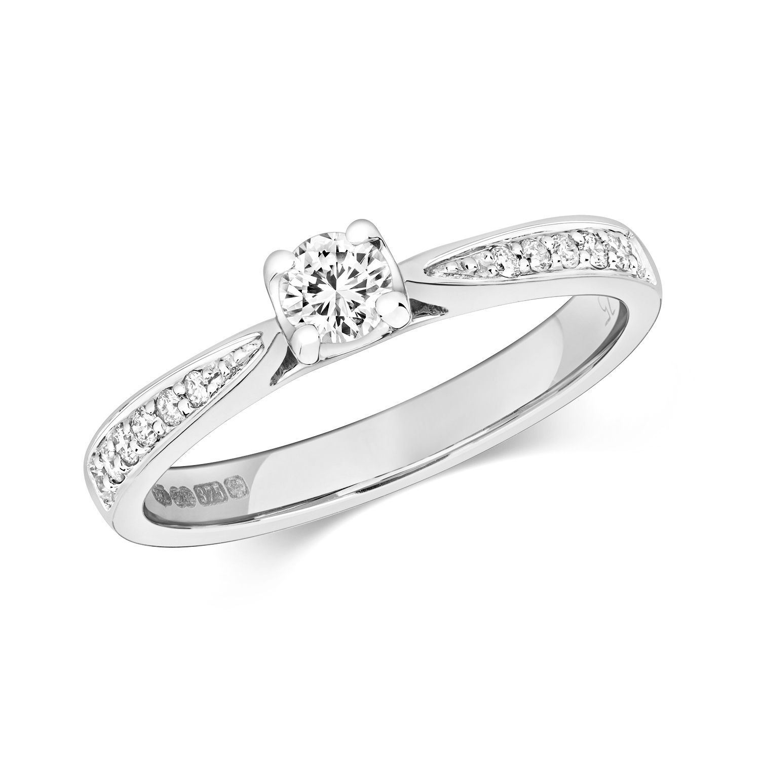 9 Karat (375) Weißgold Damen - Diamant Solitärring Brillant-Schliff 0.32 Karat H - I1