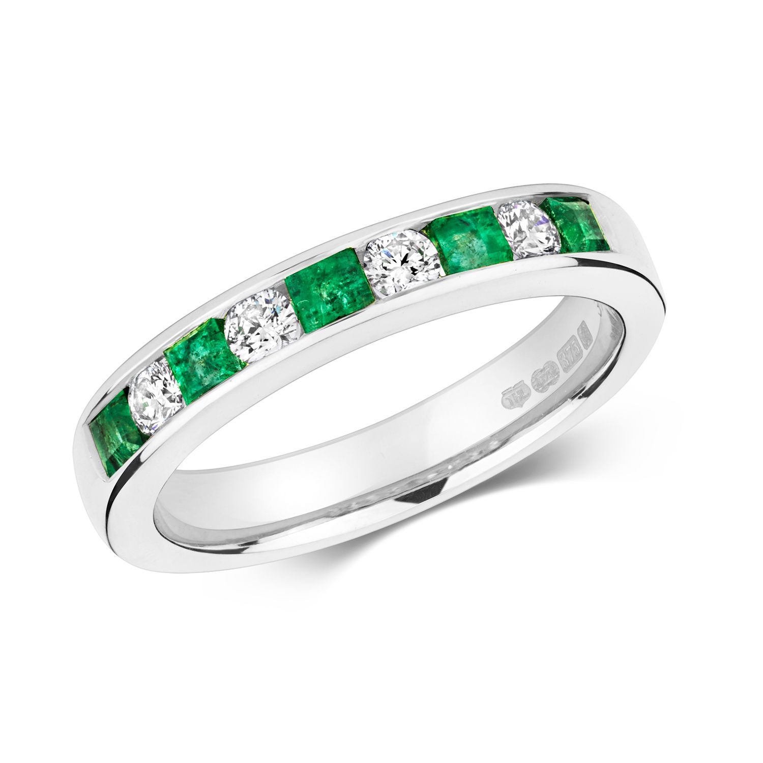 9 Karat (375) Weißgold Diamant Ring Brillant-Schliff 0.26 Karat HI - I1 mit Smaragd