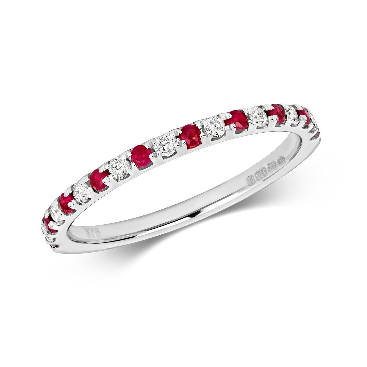 9 Karat (375) Weißgold Diamantring Brillant-Schliff 0.17 Karat H - I1 I2 mit Rubin