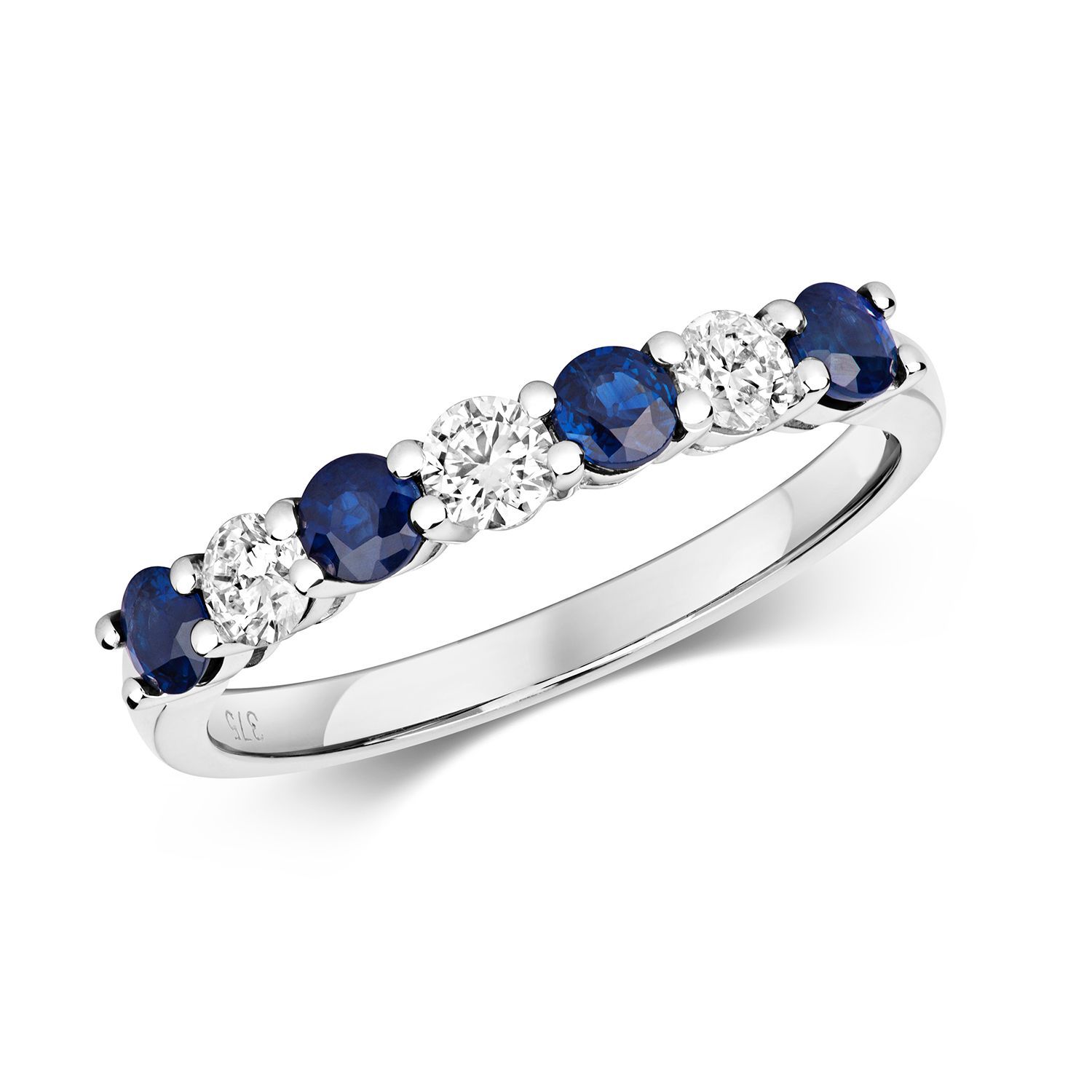9 Karat (375) Weißgold Diamantring Brillant-Schliff 0.29 Karat HI - I1 mit Saphir