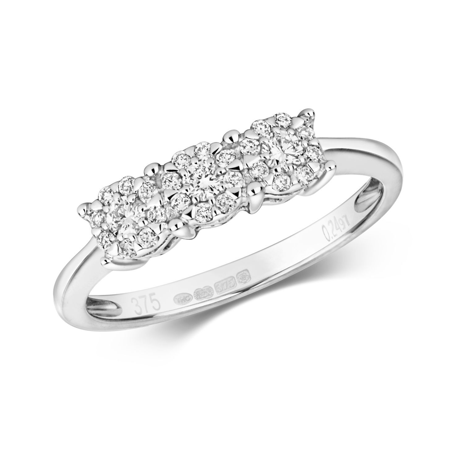 9 Karat (375) Weißgold Trilogie Diamant Ring Brillant-Schliff 0.24 Karat G - I1 I2