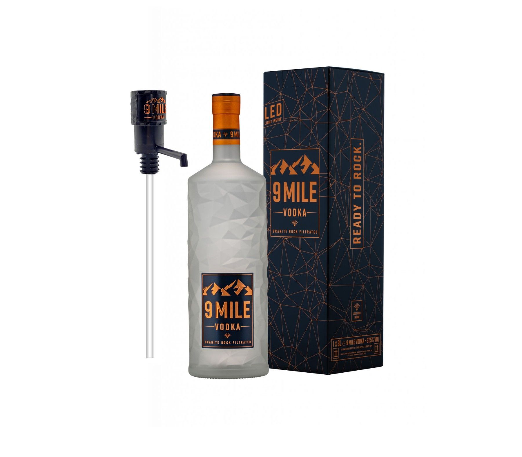 9 Mile Vodka Magnum Wodka 3l (37,5% Vol) mit Pumpe 3000ml Flasche- (Enthält Sulfite]