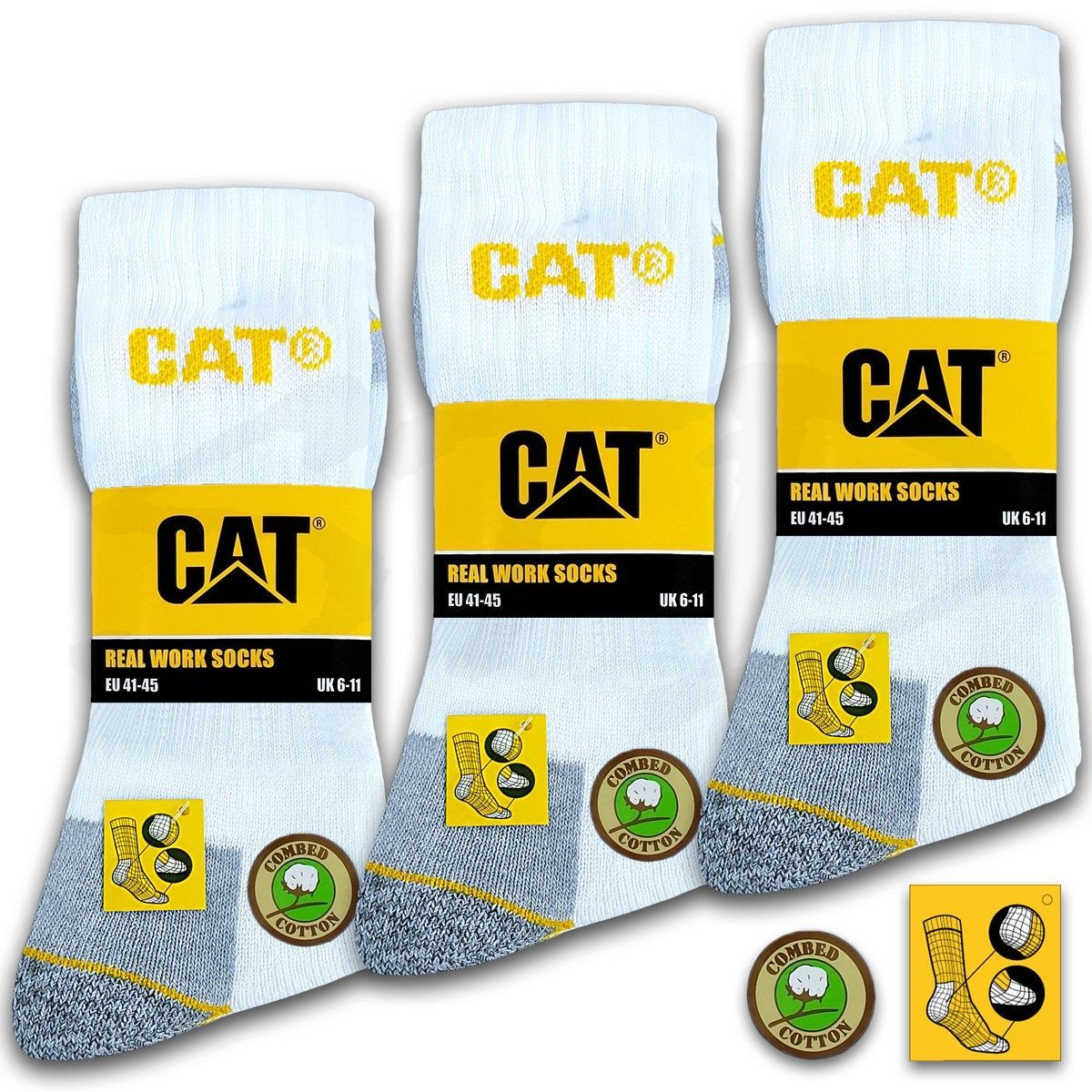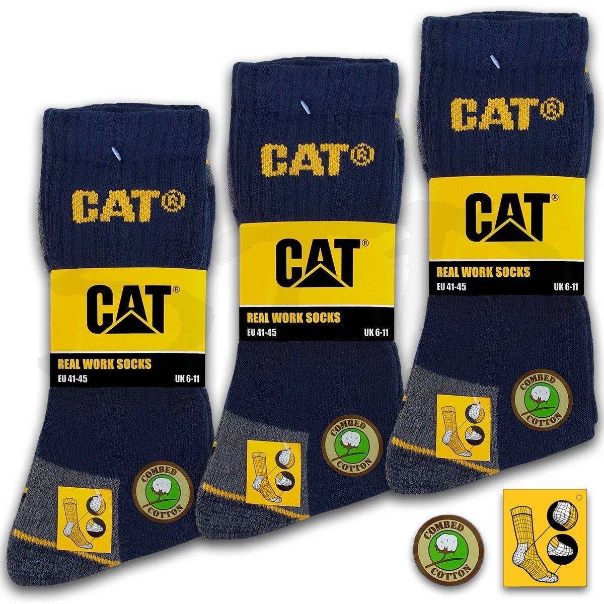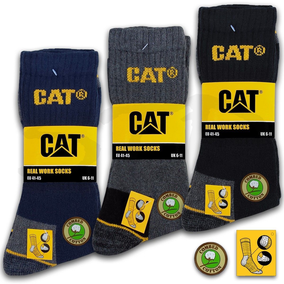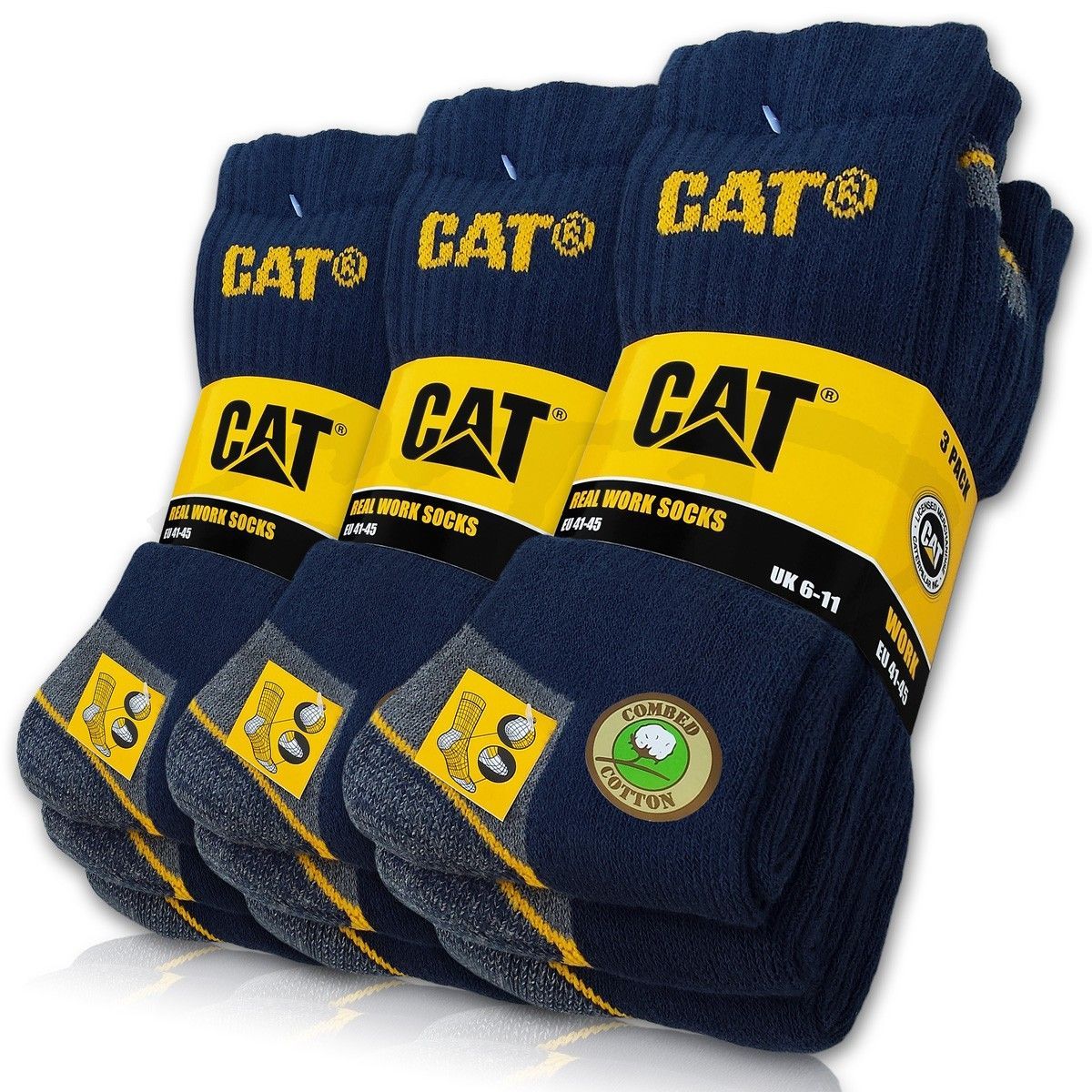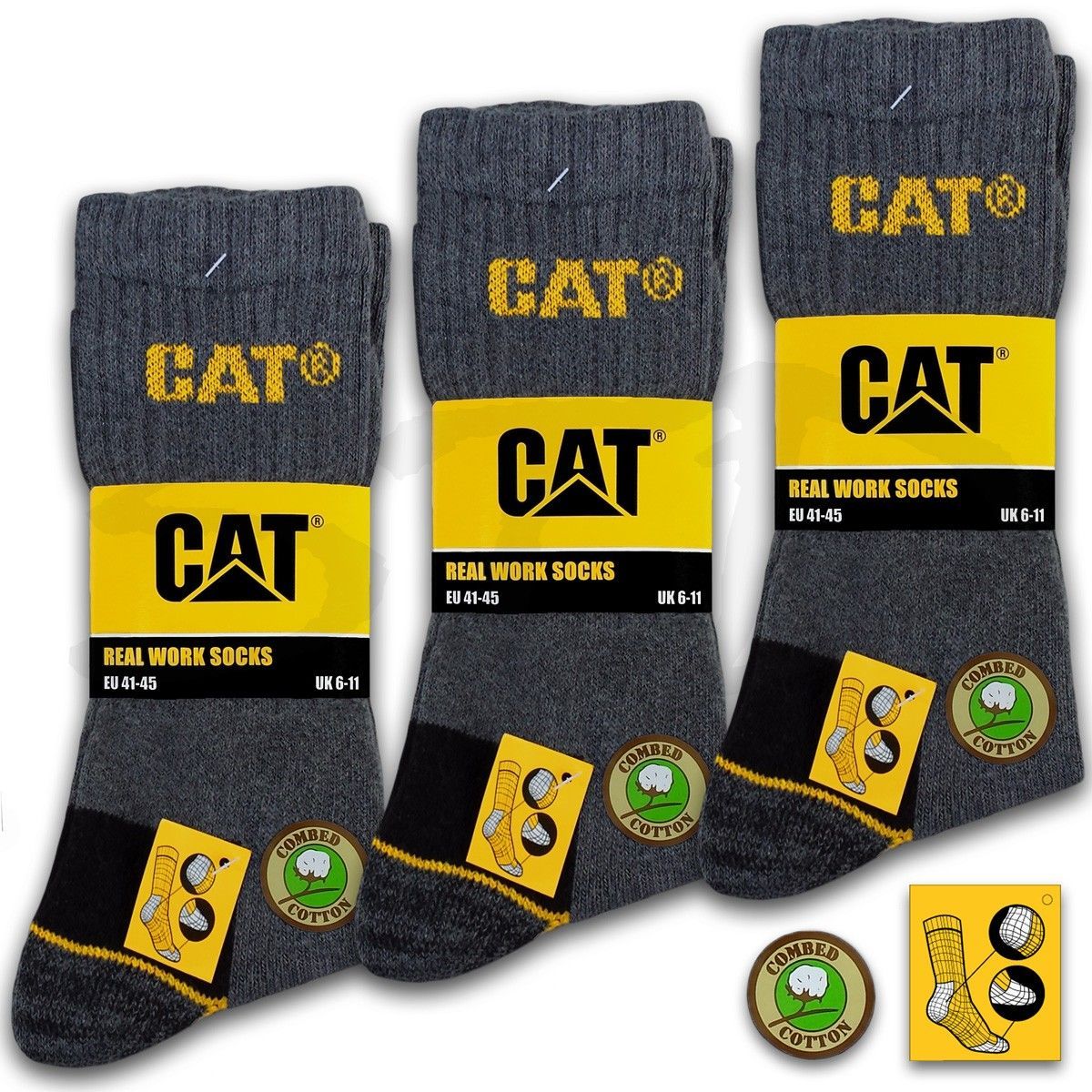 9 Paar CAT® Caterpillar REAL WORK Herren Arbeitssocken Business Socken Strümpfe 35-50