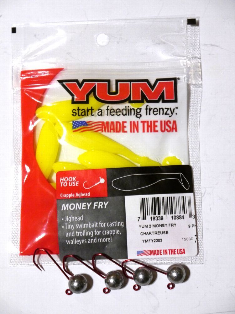 9 Stk Chartreuse YUM Money Fry incl. Jig 5 cm aus den USA supersoft mit Fischöl
