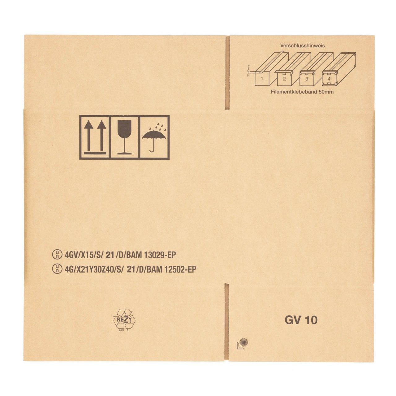 90 Gefahrgut Kartons 360 x 260 x 300 mm Wellpappe Versandkartons Gefahrstoffe Gefahrstoffe zu transportieren stellt jeden Hersteller vor große Herausforderungen. Farben, Lacke und Lösungsmittel aber auch alle anderen leicht entzündliche Stoffe benötigen einen Versandkarton, der diesen speziellen Herausforderungen gerecht wird. Unsere hochwertigen Gefahrgutkartons sind zugelassen für den See,- Luft-, Eisenbahn- und Straßenverkehr und verfügen über die UN-Zulassung 4G/4GV. Damit sind unsere Kartons die optimale Lösung bei dem Versand von Gefahrstoffen. Verwenden Sie unsere Gefahrgutkartons als Außenverpackung für flüssige Stoffe oder als Umverpackung für Glas, Metall und Kunststoff. Achten Sie bei dem Versand von Gefahrstoffen immer auf die richtige Verpackung. Gefertigt werden unserer hochwertigen Gefahrgutkartons aus strapazierfähigen B- und C-Wellen die extra für den Versand von Gefahrstoffen konzipiert worden sind. Ob Sie jedoch Ihren Gefahrstoff mit unseren Kartons versenden können, entnehmen Sie bitte dem Informationsblatt Ihres Gefahrstoffes. Da unsere Kartonagen aber für alle Gefahrgutklassen (I-hohe Gefahr, II- mittlere Gefahr, III- geringe Gefahr) zugelassen sind, sollte dies kein Problem sein. Auch die unterschiedlichen Gefahrgutverpackungen (X, Y, Z) decken unsere Gefahrgutkartons ab. Mit dem Kauf unsere hochwertigen Gefahrgutkartons erhalten Sie eine Verpackung, der Sie empfindliche Stoffe anvertrauen können und eine zuverlässige Warensicherung erhalten. Achten Sie aber bitte auch beim Verschließen der Kartons darauf, dass zulässige Filamentklebeband zu verwenden und dies so anzubringen, wie es auf dem Karton abgebildet ist, um den optimalen Schutz zu erhalten. Innenmaße (L x B x H): 360 x 260 x 300 mm Außenmaße (L x B x H): 374 x 274 x 328 mm Gurtmaß: 157,8 cm Bauart: Gefahrgutkarton mit UN-Zulassung Qualität: 2-wellig - 2.70 BC-Welle Farbe: Braun Gewicht: 0,78 kg Volumen: 28,08 l Traglast: ca. 30 kg