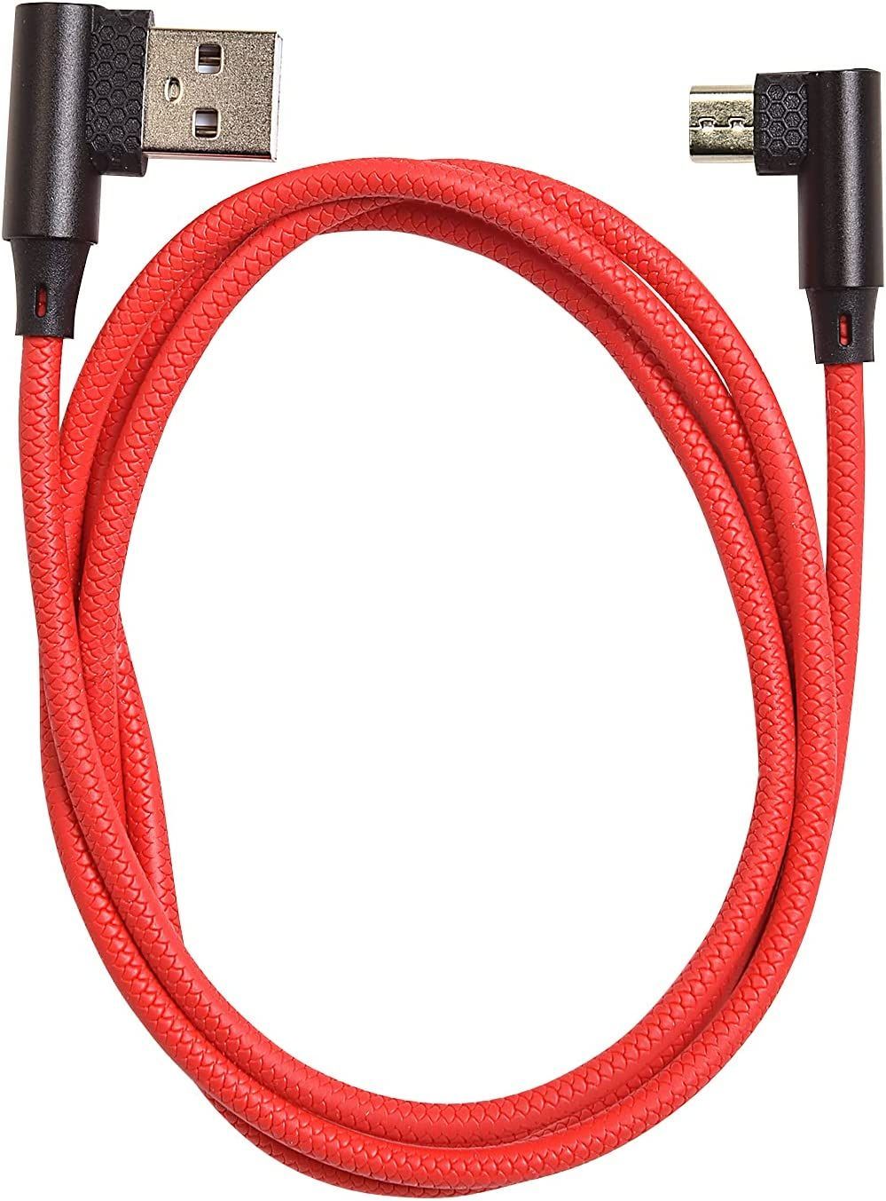 HEITECH 90 Grad 1m Micro-USB Winkel USB Kabel abgewinkelt Nylon für Smartphones rot