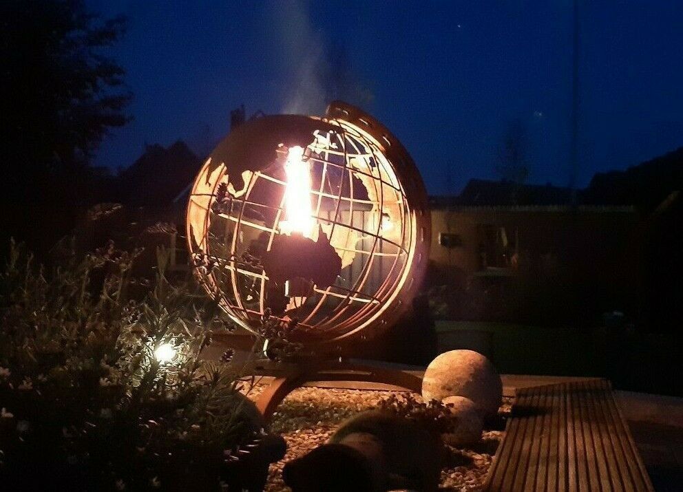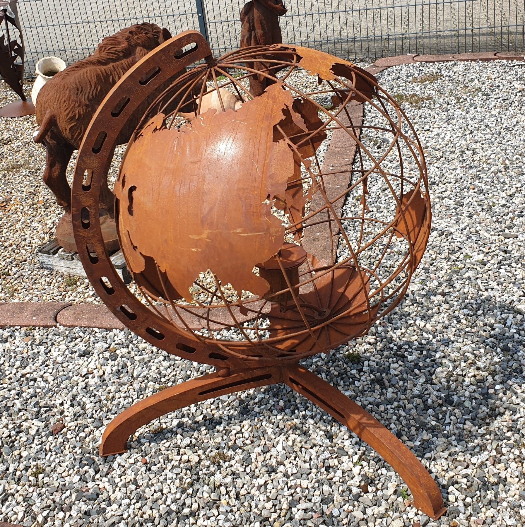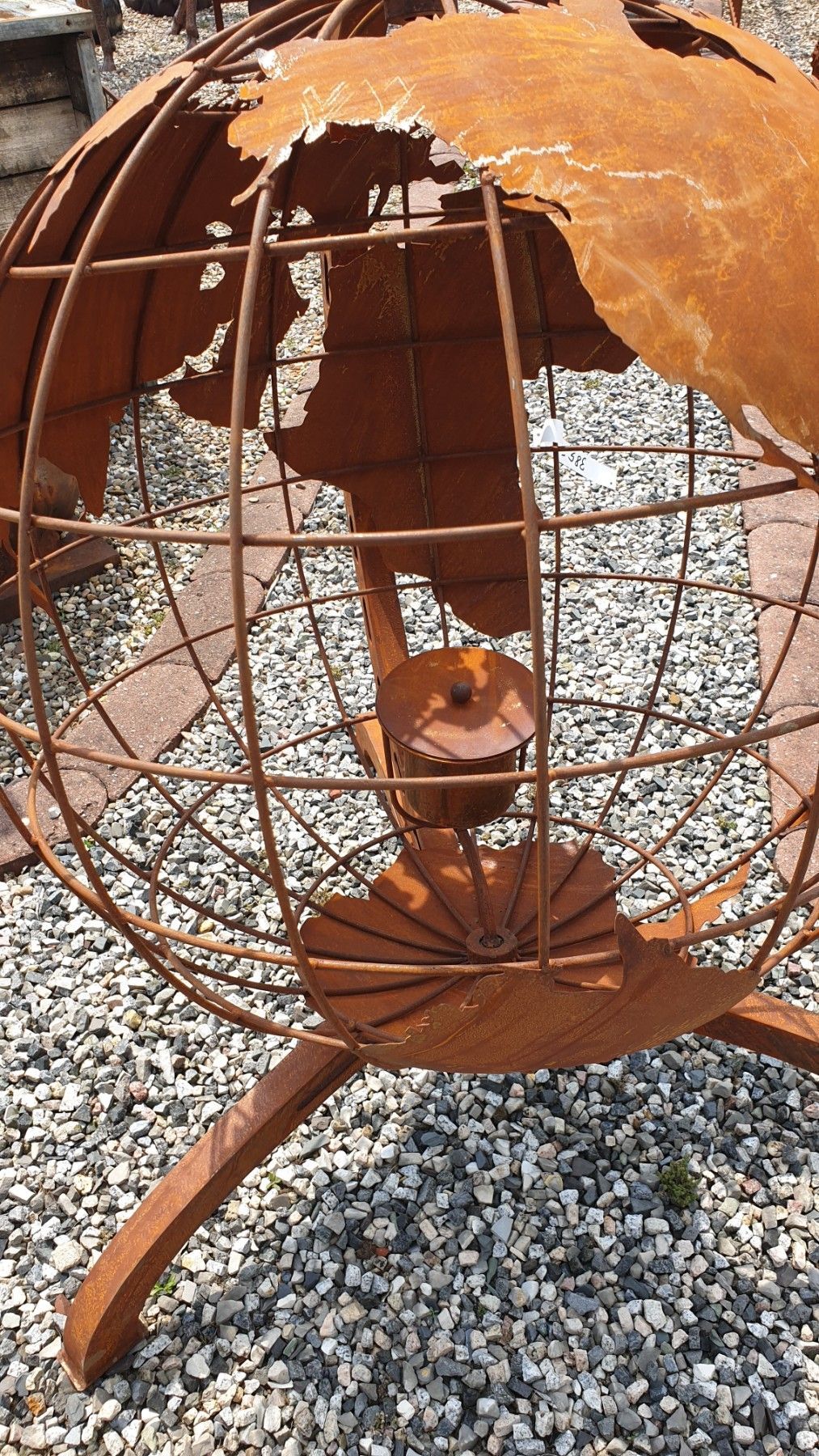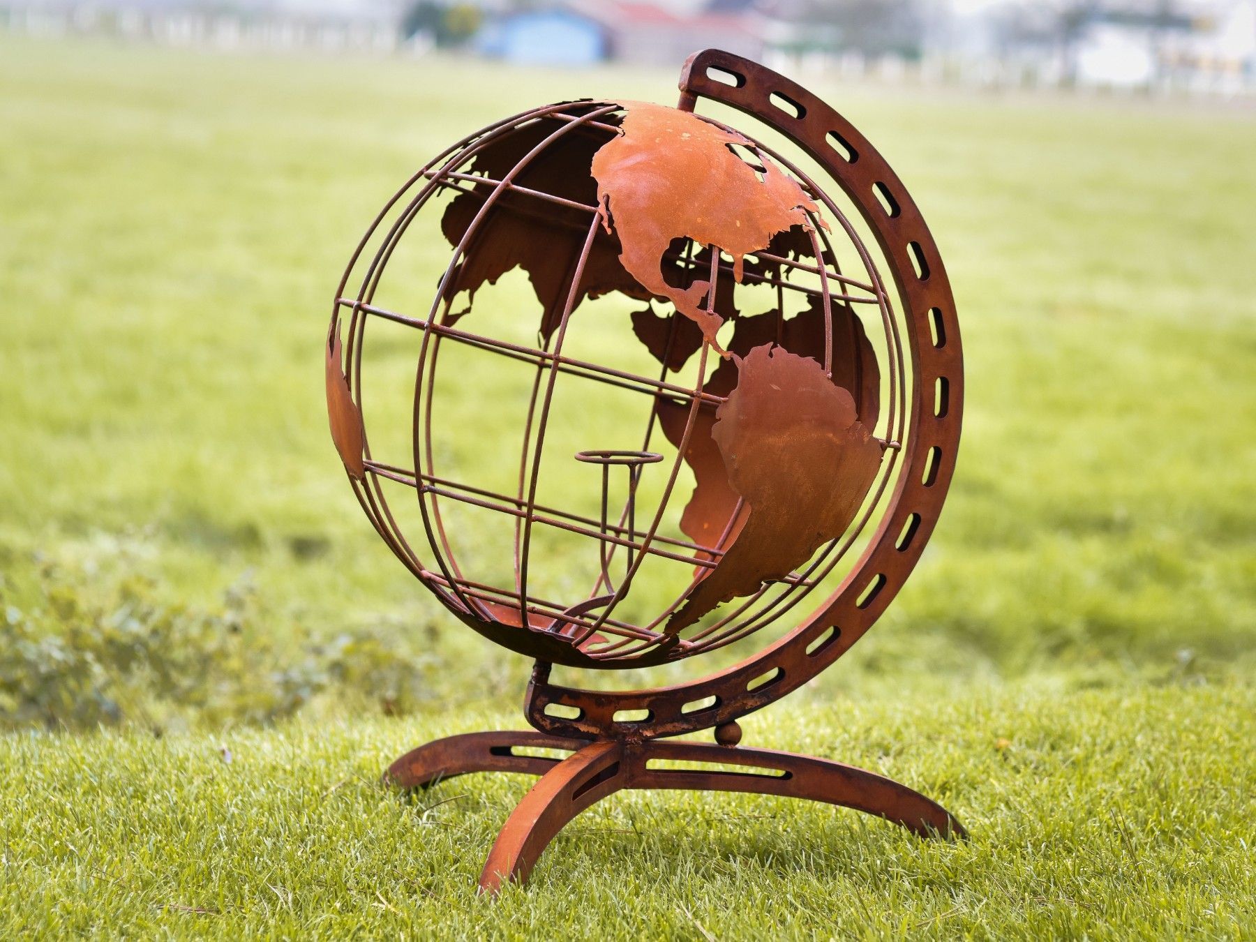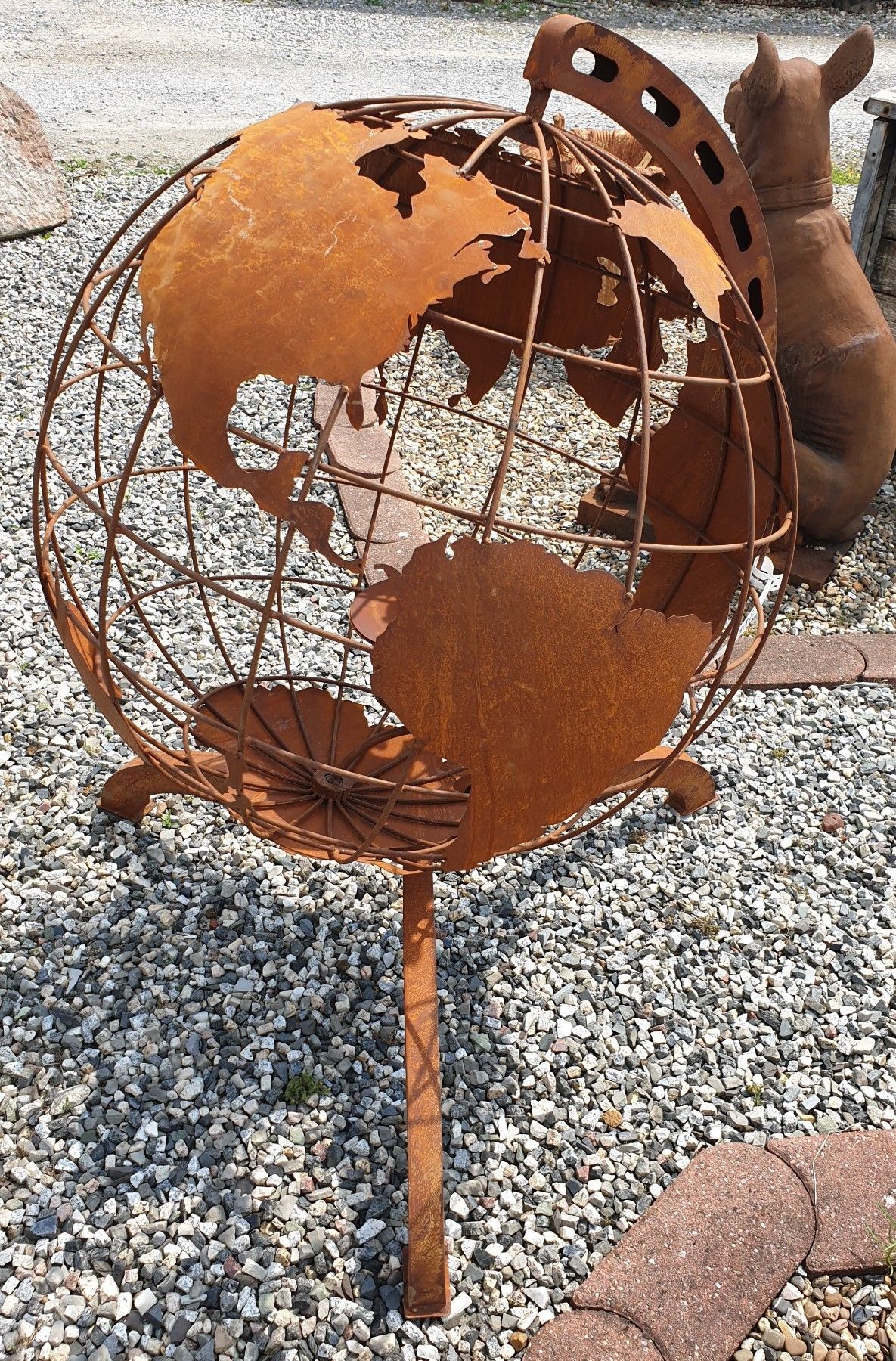 90cm, Globus, Feuerschale, Weltatlas, Weltkugel, Metall, Metallskulptur, Gartendeko