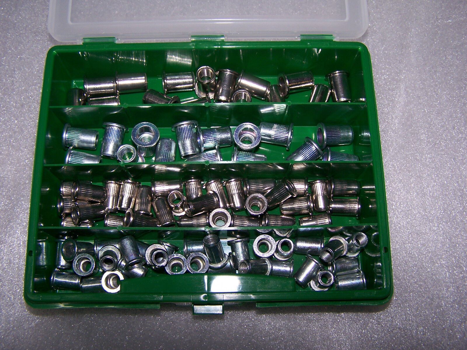90tlg Nietmuttern Sortiment M6 + M8 Stahl und Edelstahl mit Flachkopf in Box