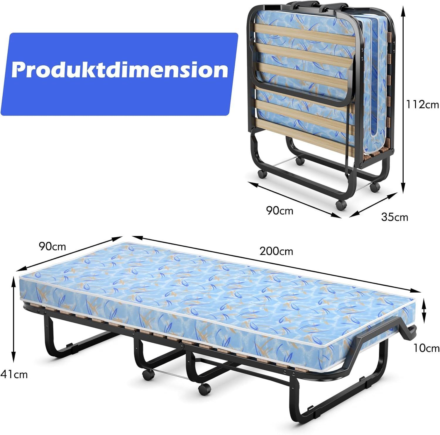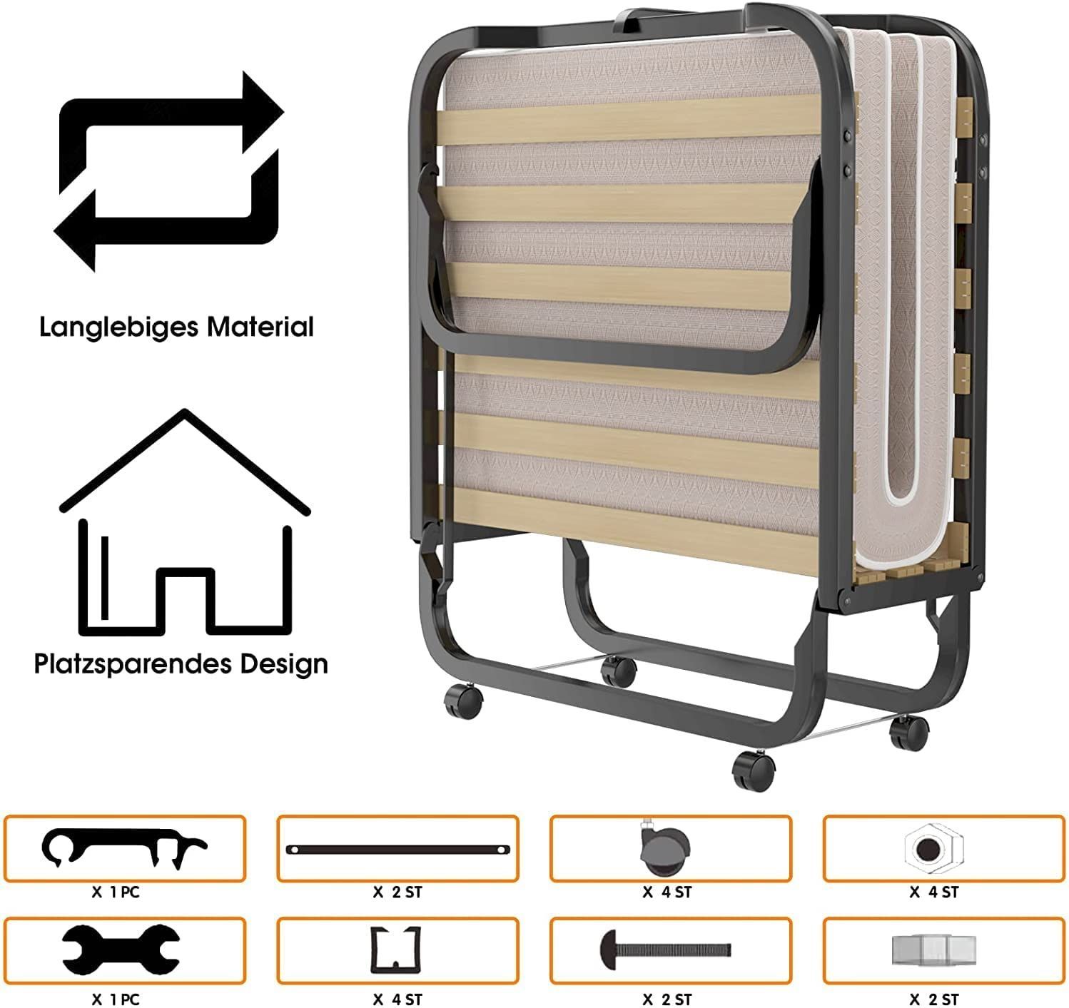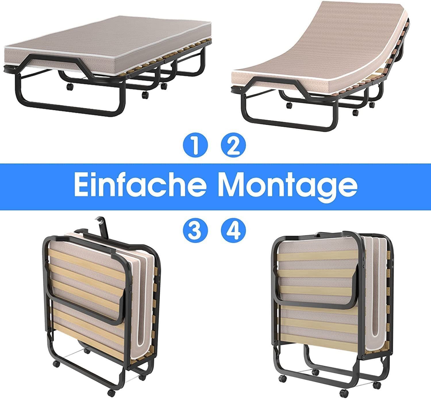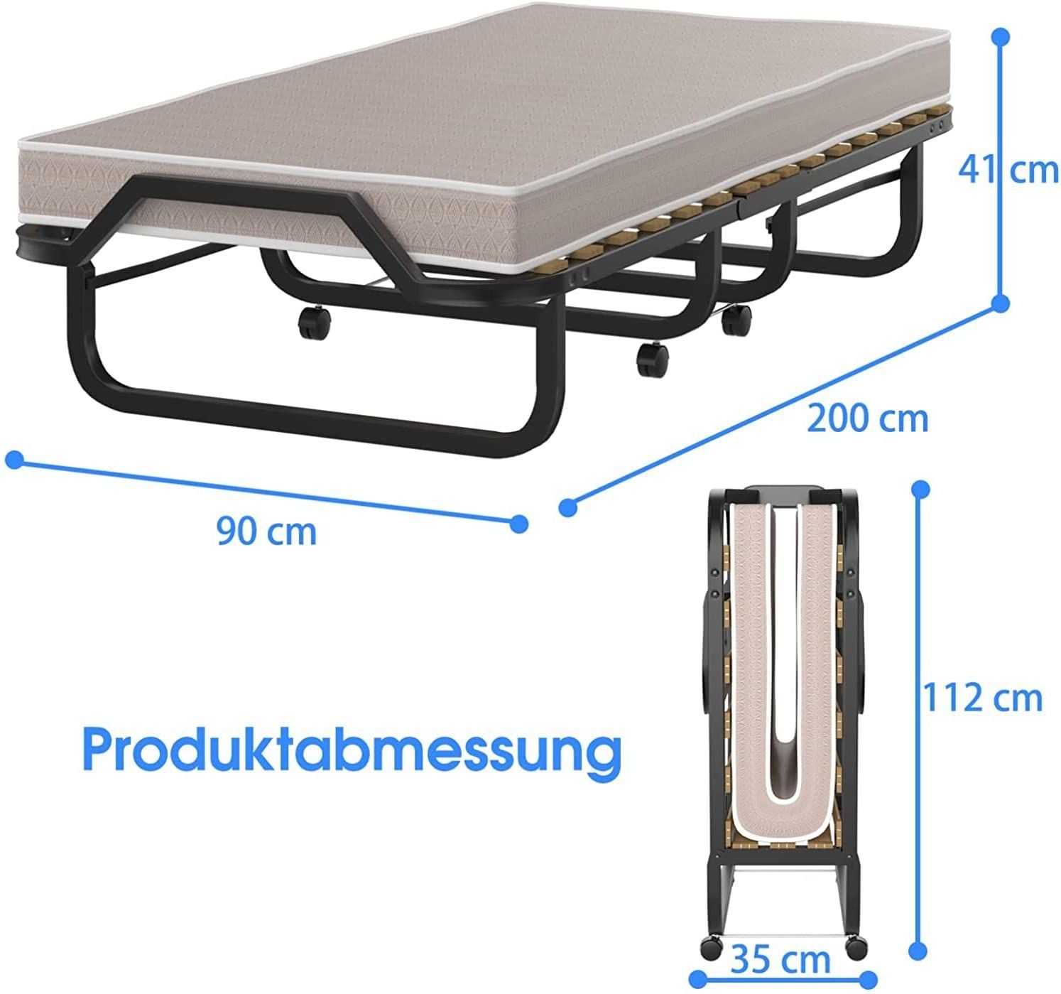90x200cm Gästebett mit Matratze aus Rückstellschaum, Klappbares Einzelbett bis 120 kg