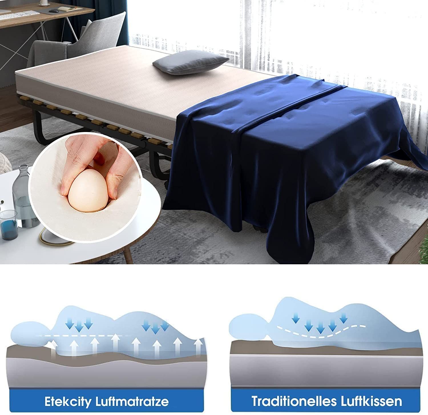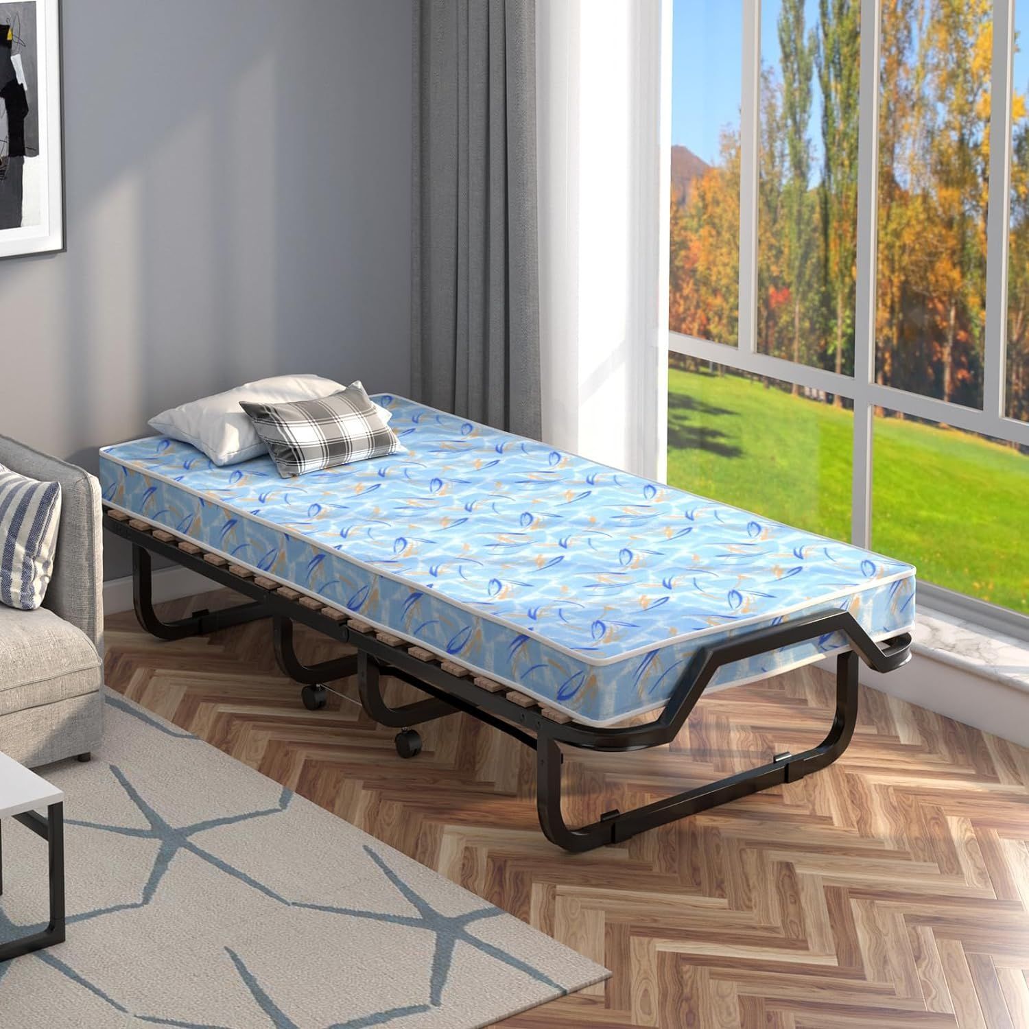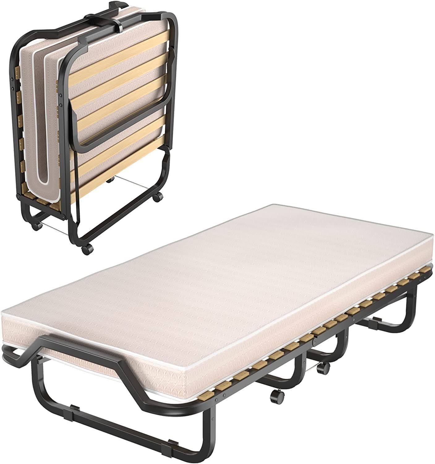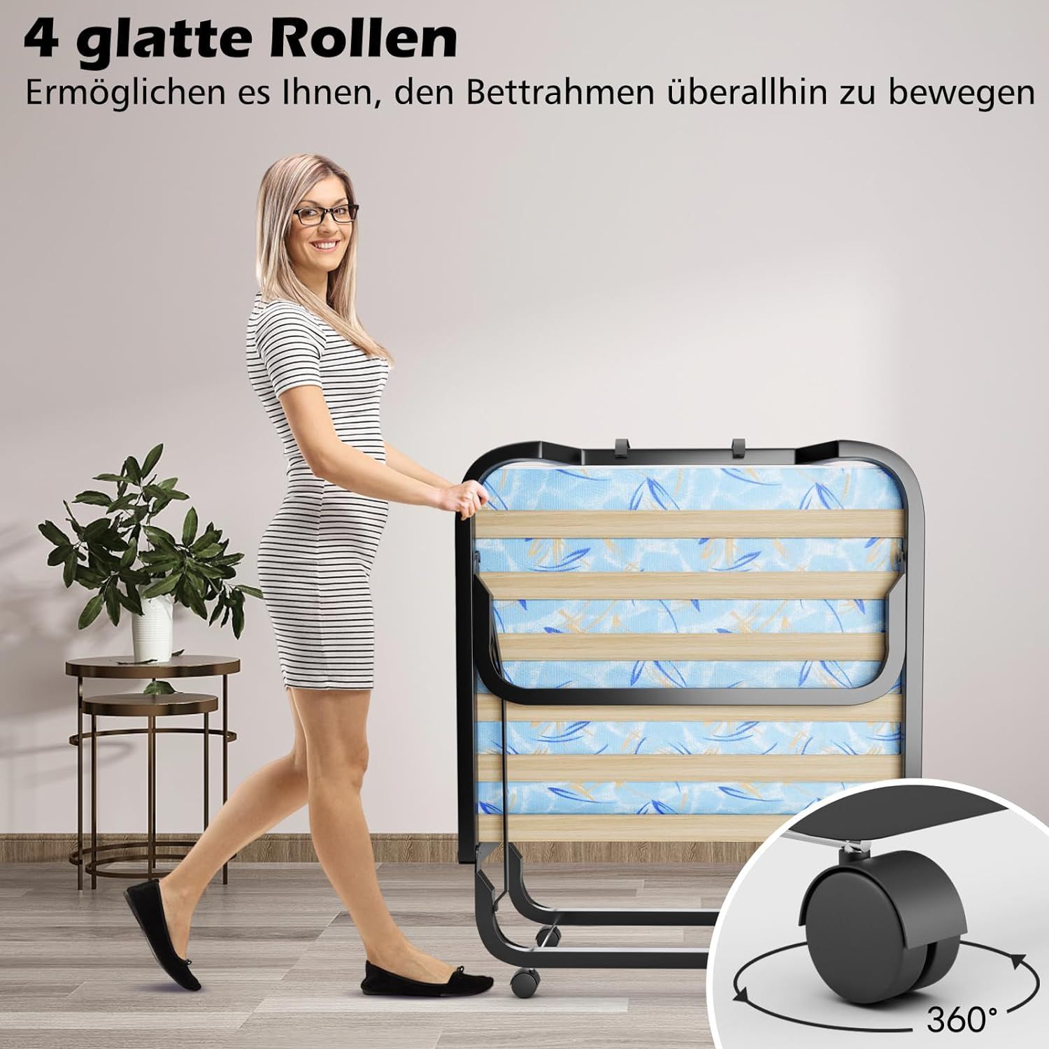 90x200cm Gästebett mit Matratze aus Rückstellschaum, Klappbares Einzelbett bis 120 kg