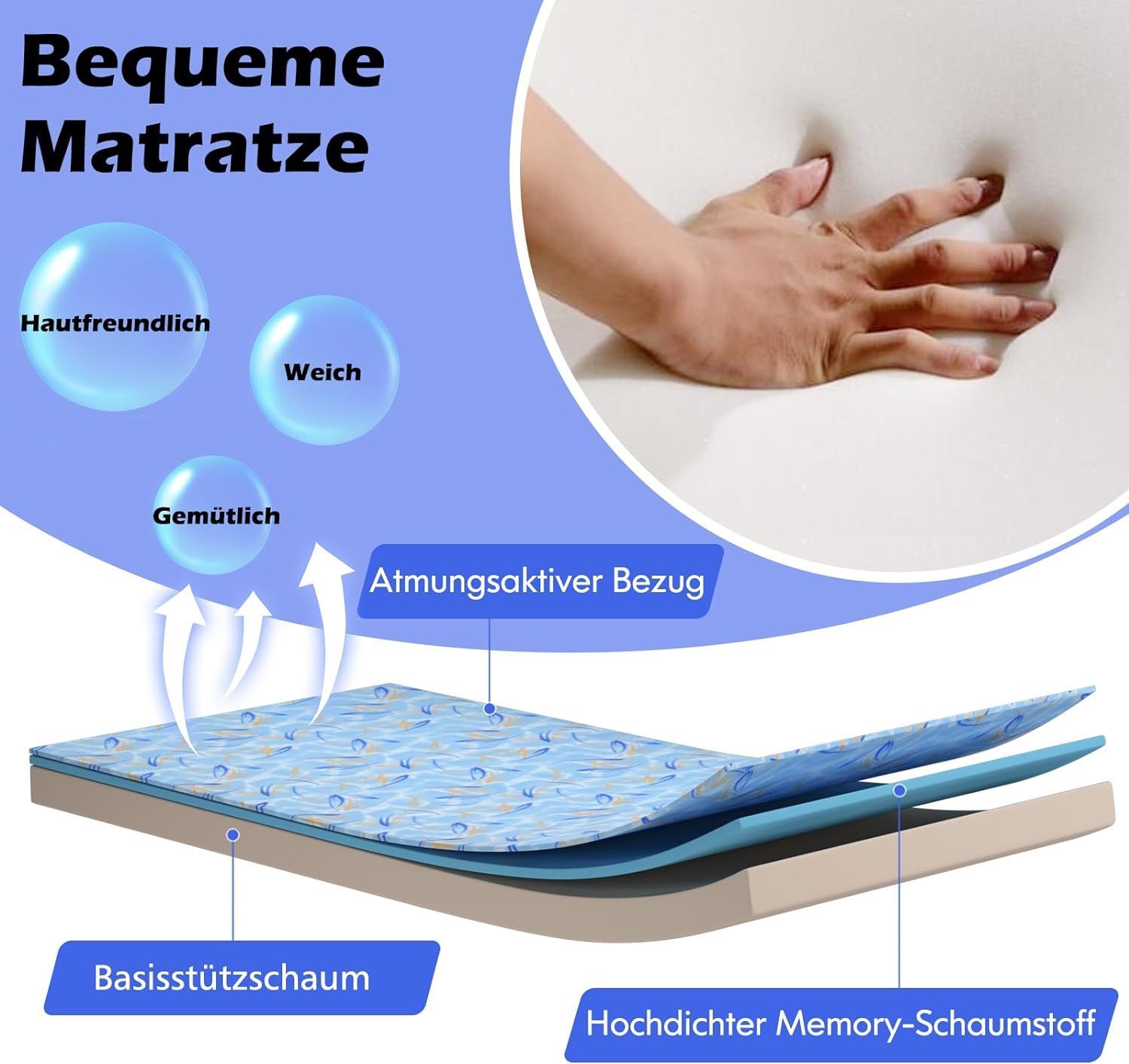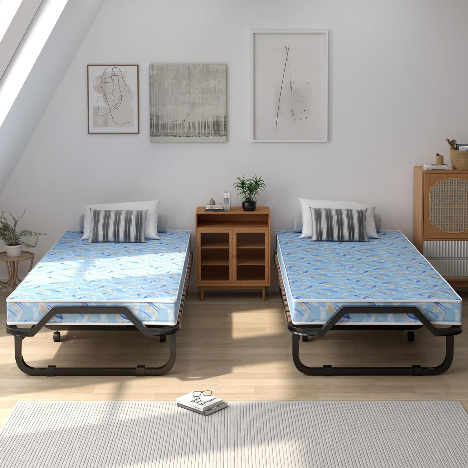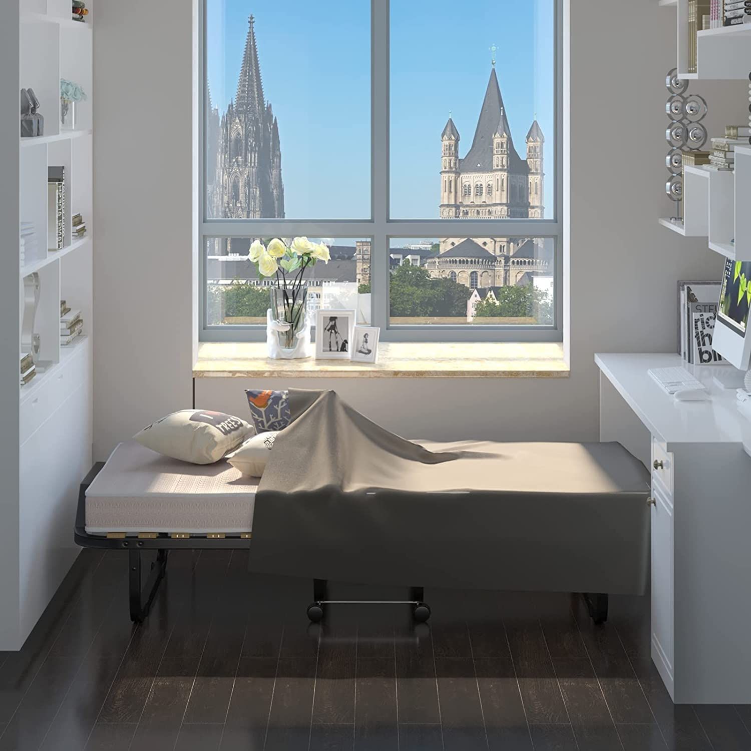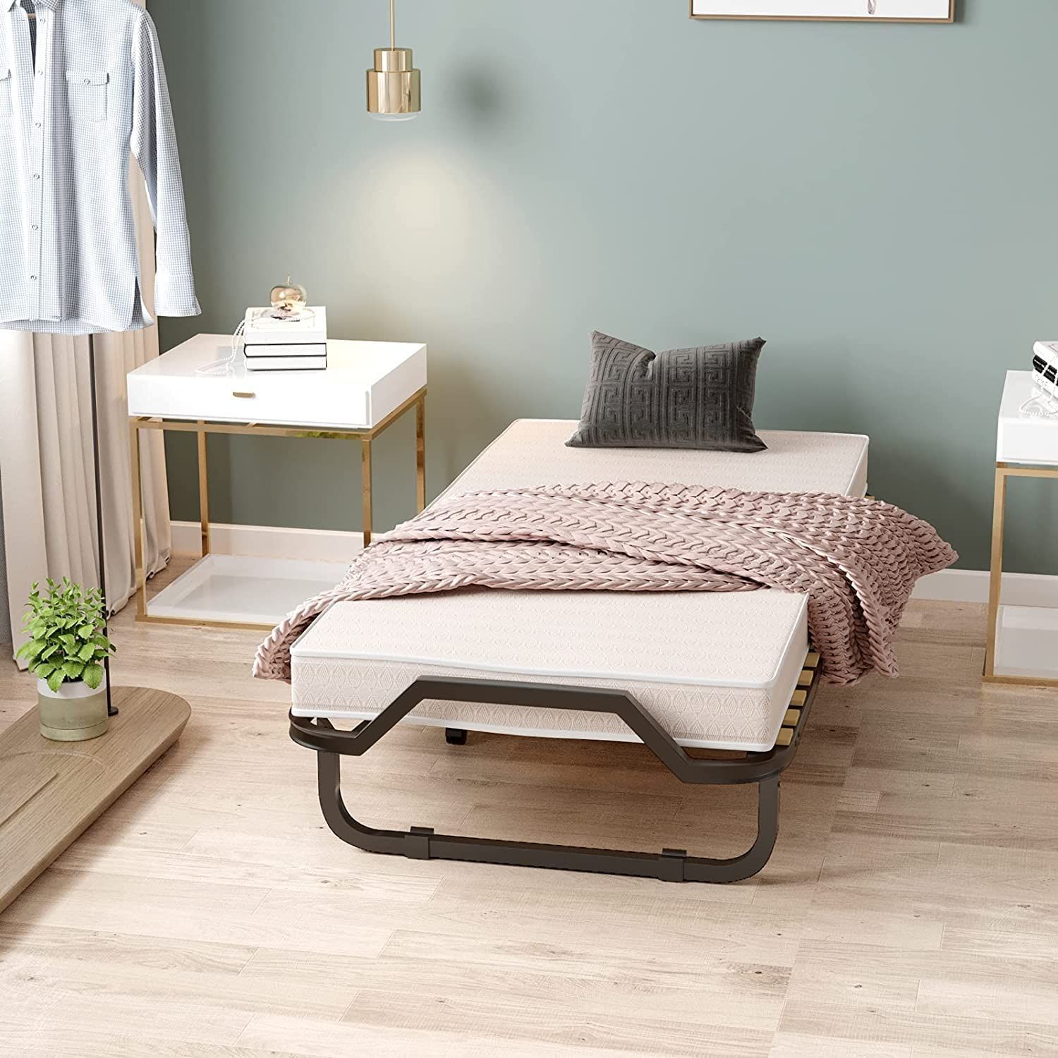 90x200cm Gästebett mit Matratze aus Rückstellschaum, Klappbares Einzelbett bis 120 kg