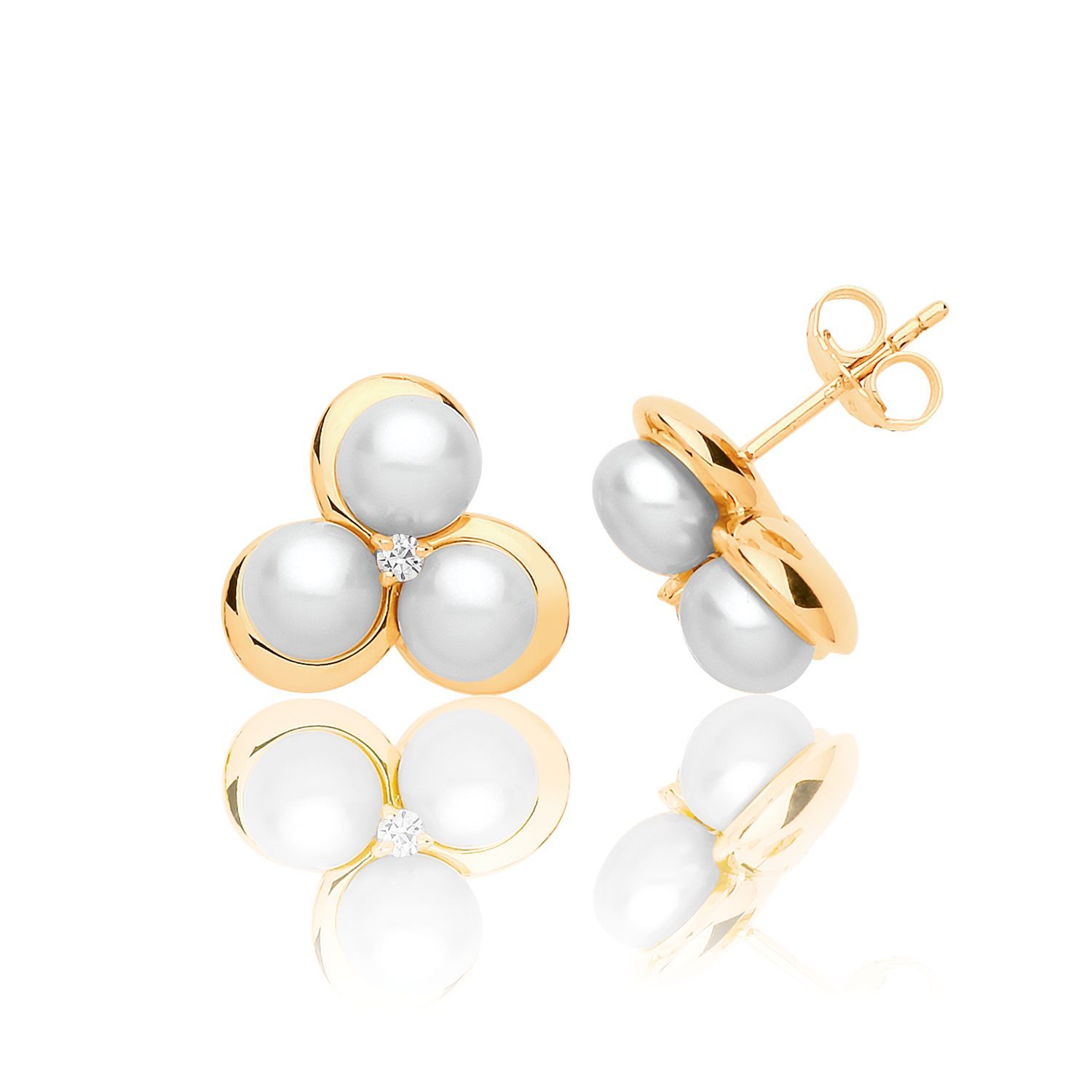 925 Sterling Silber Paar Ohrstecker mit Zirkonia, Süßwasser-Zuchtperle - 7 Gramm