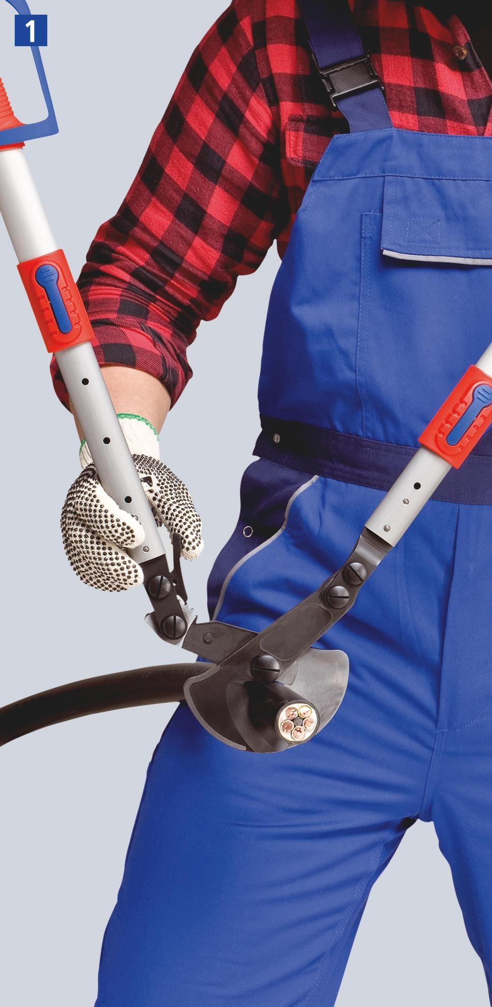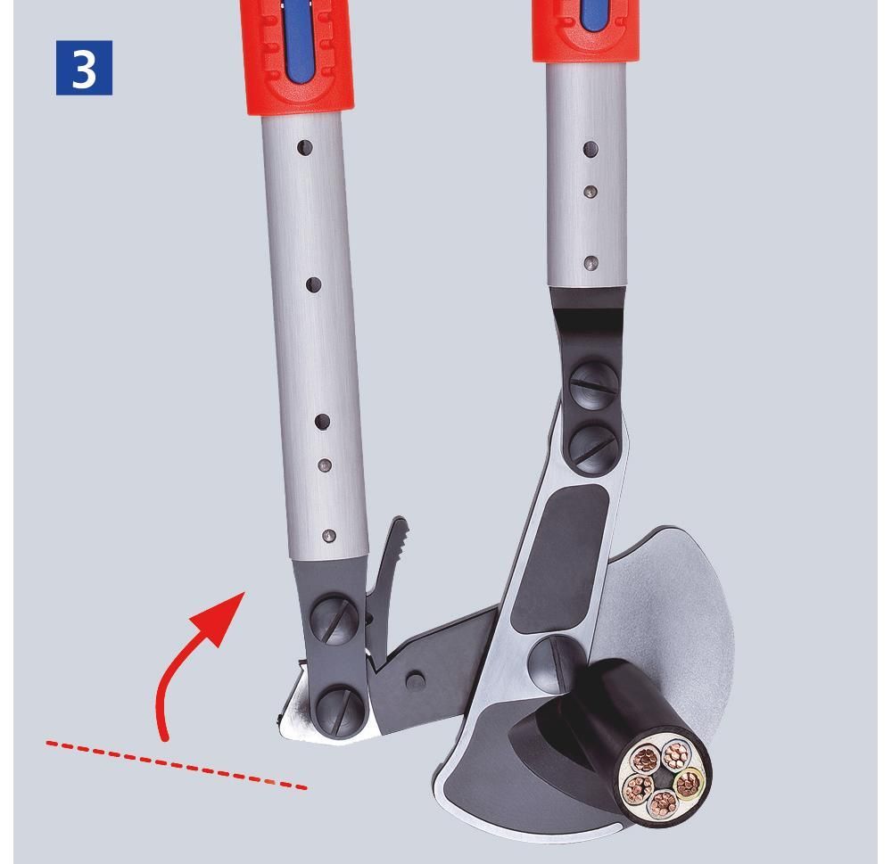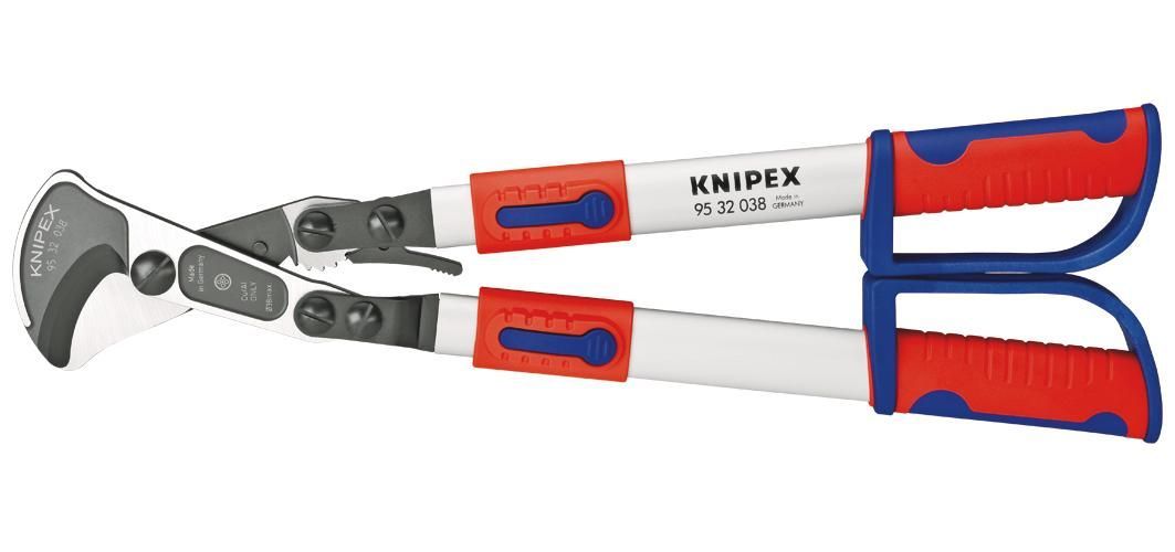 KNIPEX 95 32 038 Kabelschere (Ratschenprinzip) mit Teleskopschenkeln mit Mehrkomponenten-Hü