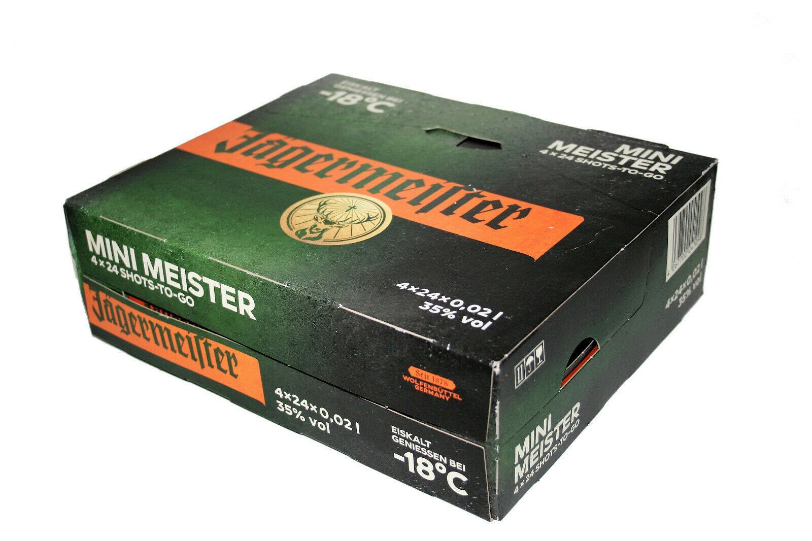 Jägermeister 96 Flaschen Jägermeister Kräuterlikör 35% 4x24x 0,02 l - 20 ml Minis SHOTS TO GO 2cl