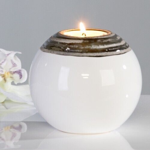 96565 Teelichthalter Penelope aus Keramik · weiß glänzend mit echtem Platinrand
