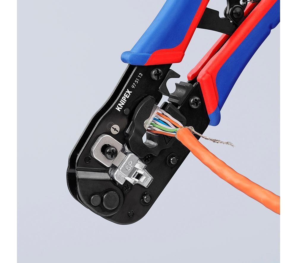 KNIPEX 97 51 13 SB Crimpzange für RJ45-Westernstecker mit Mehrkomponenten-Hüllen brüniert 1