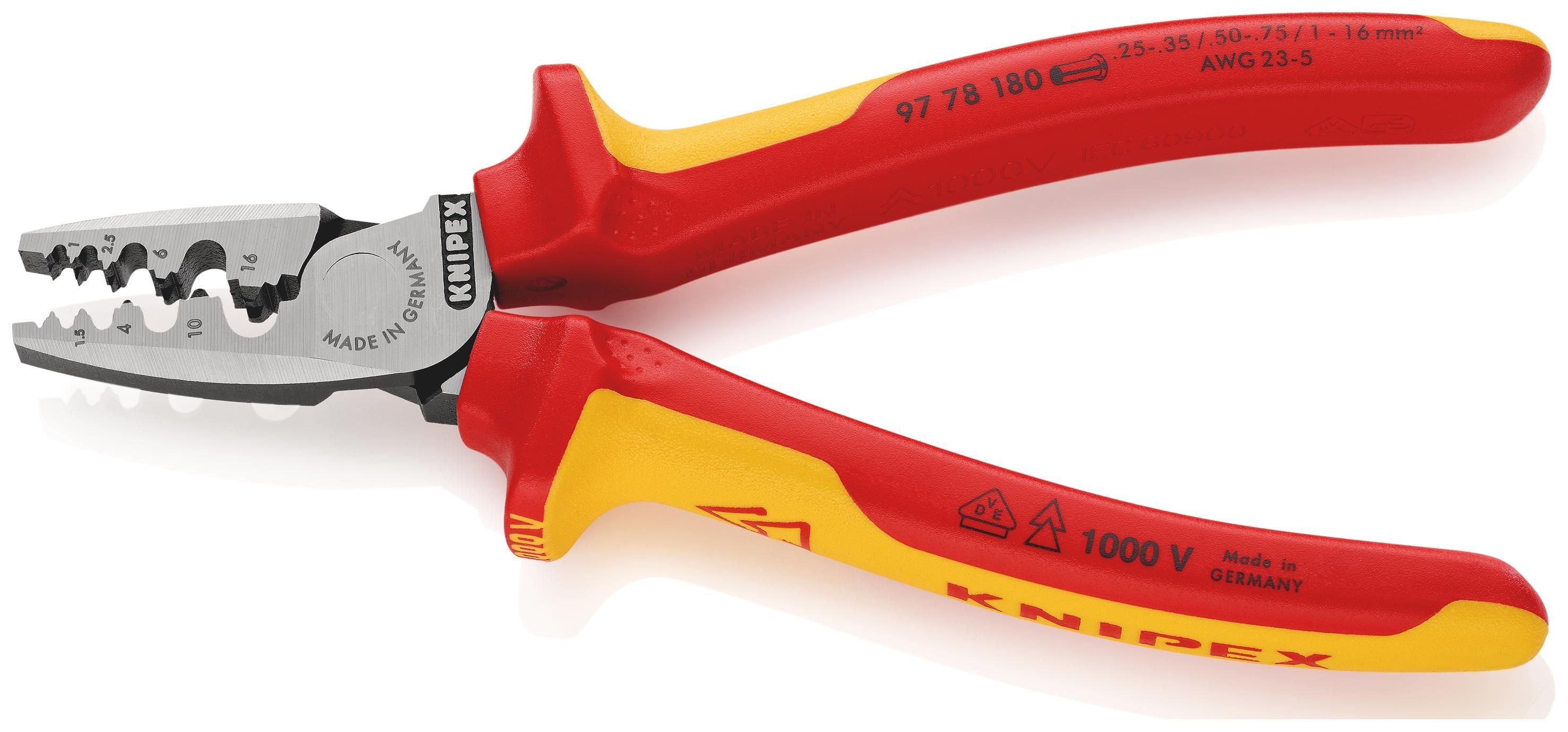 KNIPEX 97 78 180 Crimpzange für Aderendhülsen isoliert mit Mehrkomponenten-Hüllen, VDE-gepr