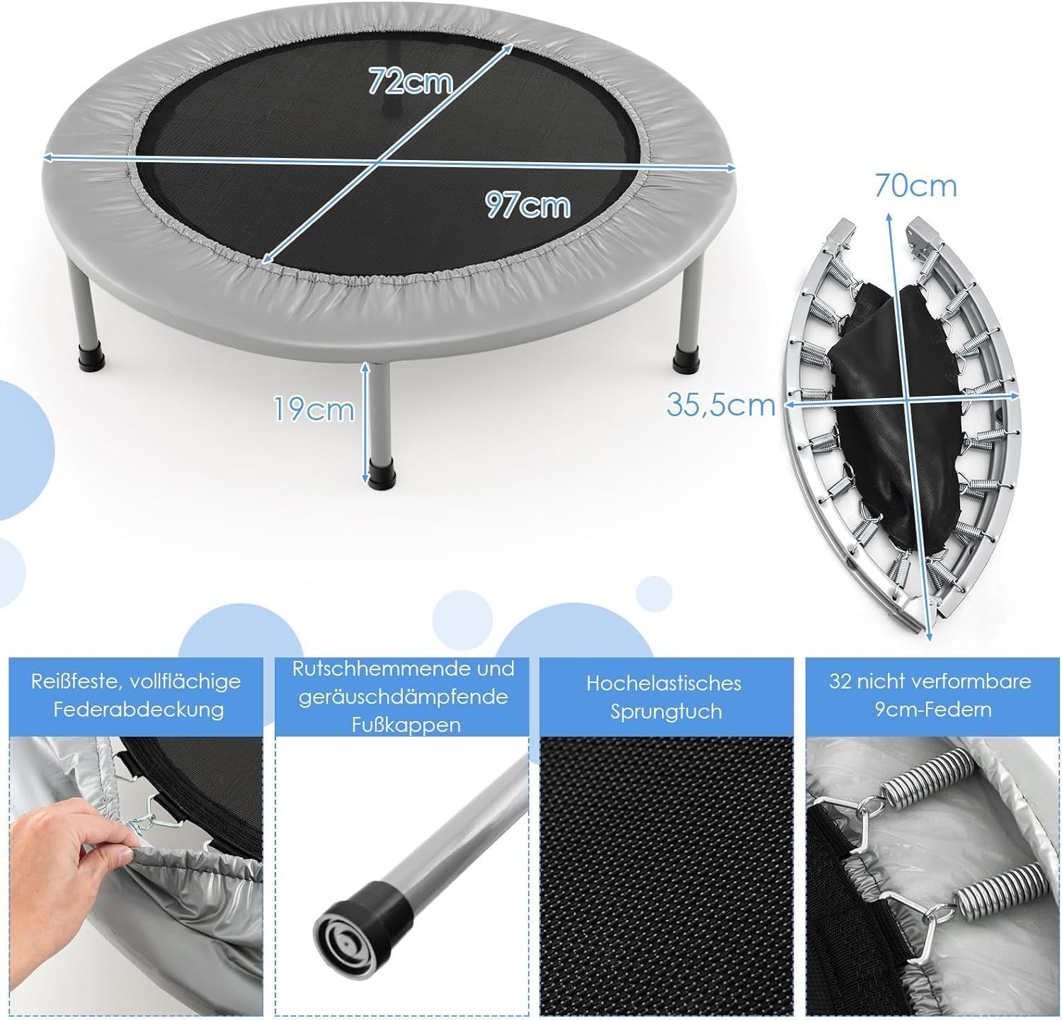 97cm Mini Trampolin, Fitness Trampolin faltbar, Kindertrampolin bis 150kg belastbar